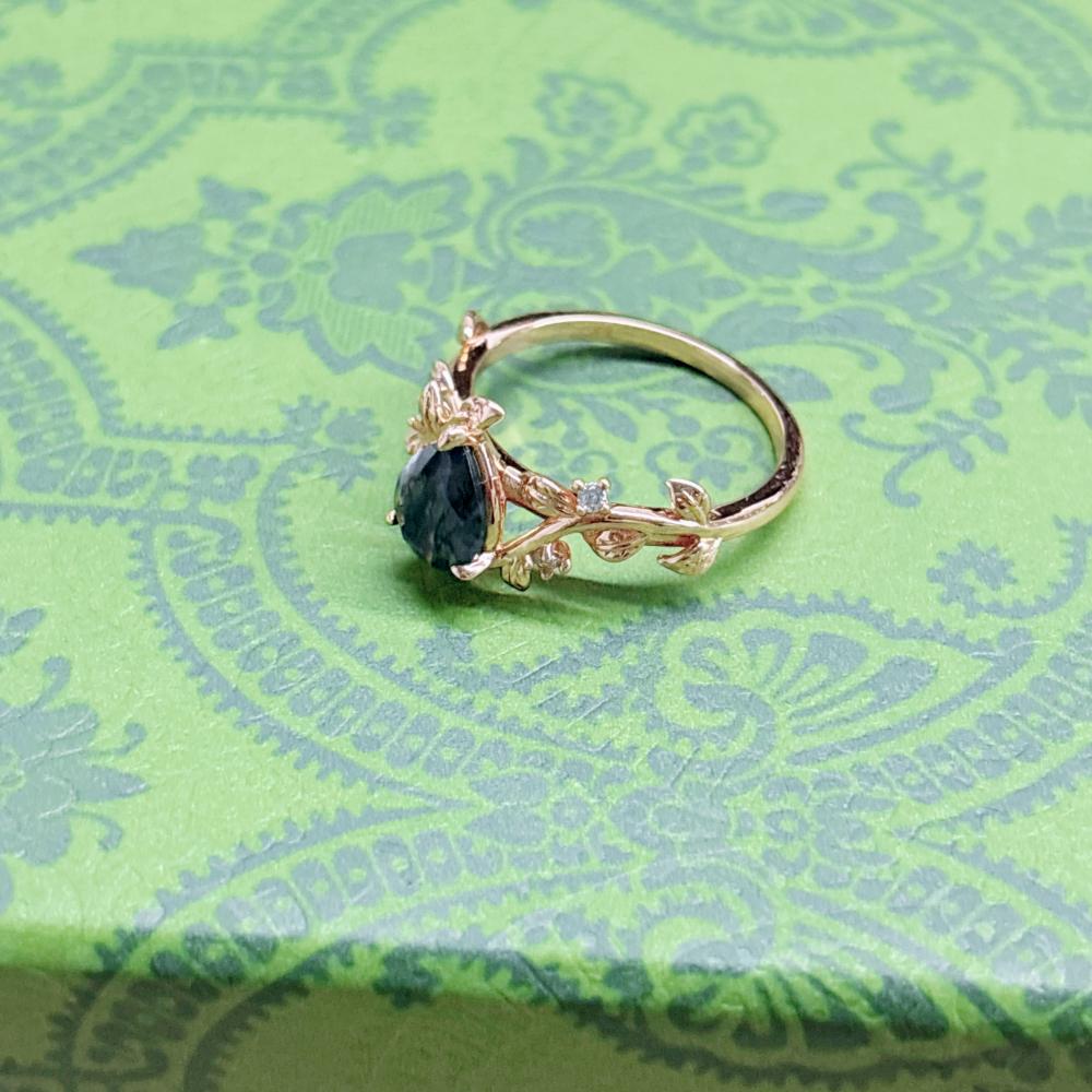 Jeulia Bypass Rose Gold Pear Cut Moss Agate Engagement Ring