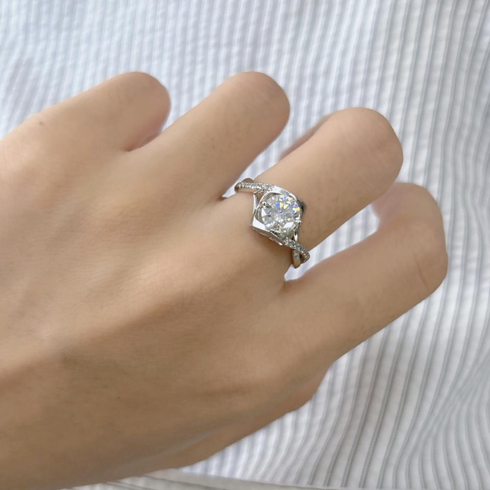 Jeulia Bypass Twist Round Cut Ring Sterling Silver