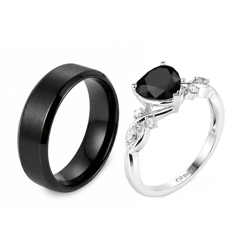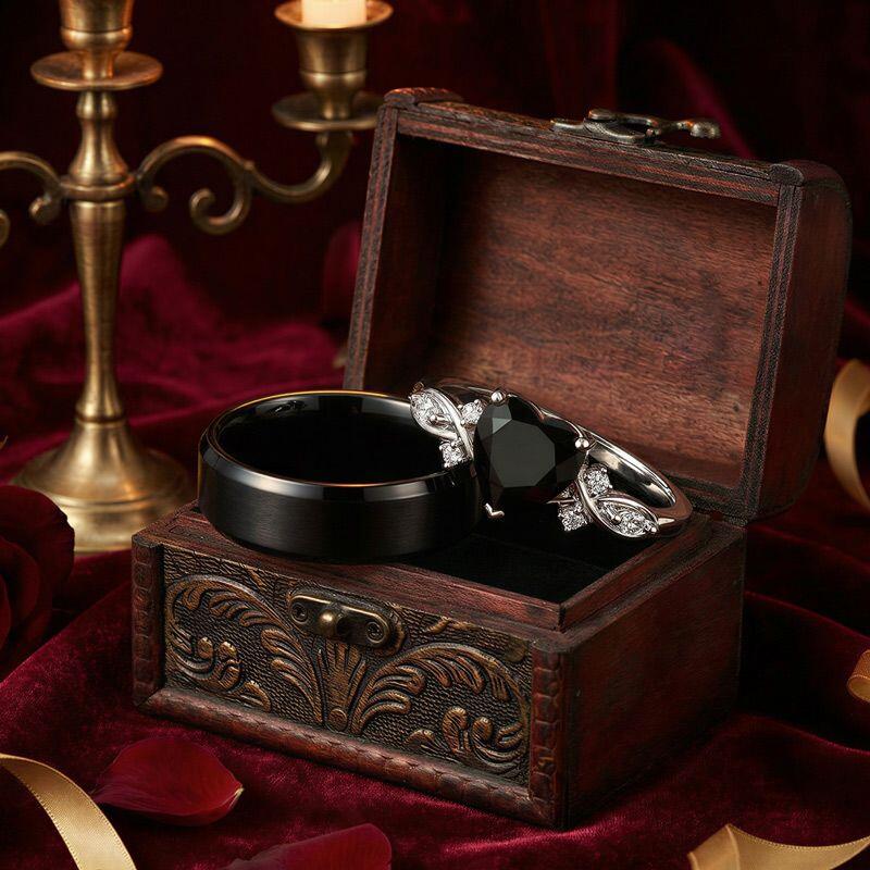 Jeulia Classic Black Heart Couple's Ring Set