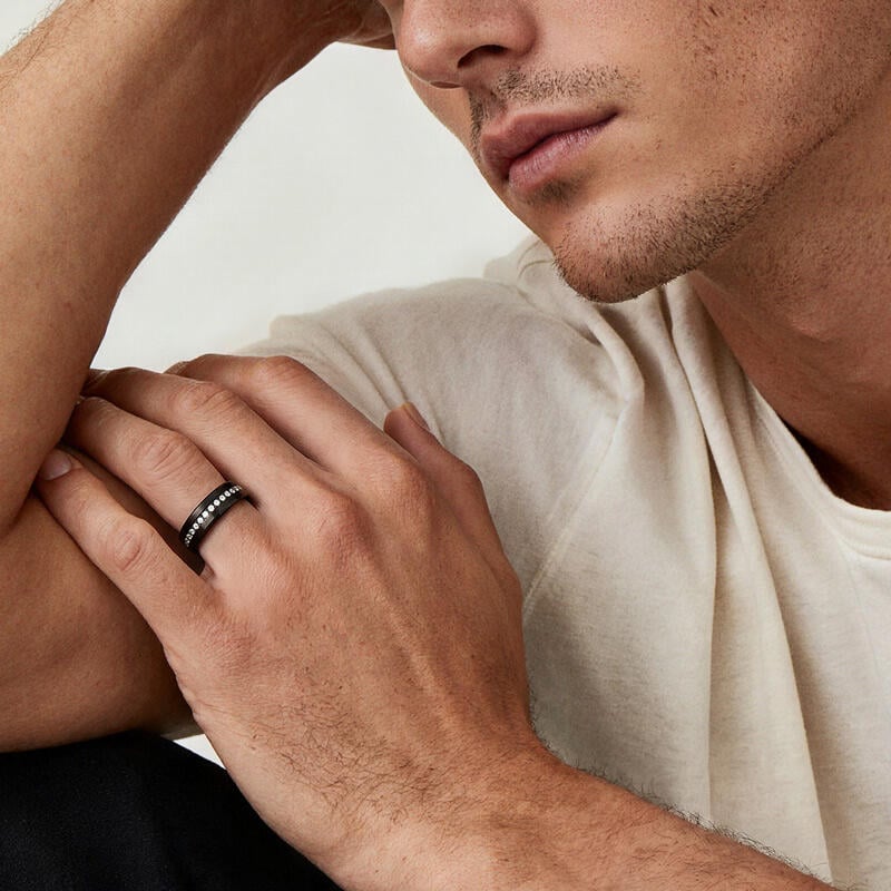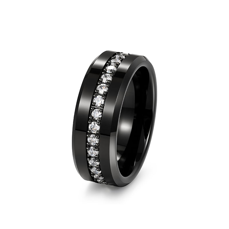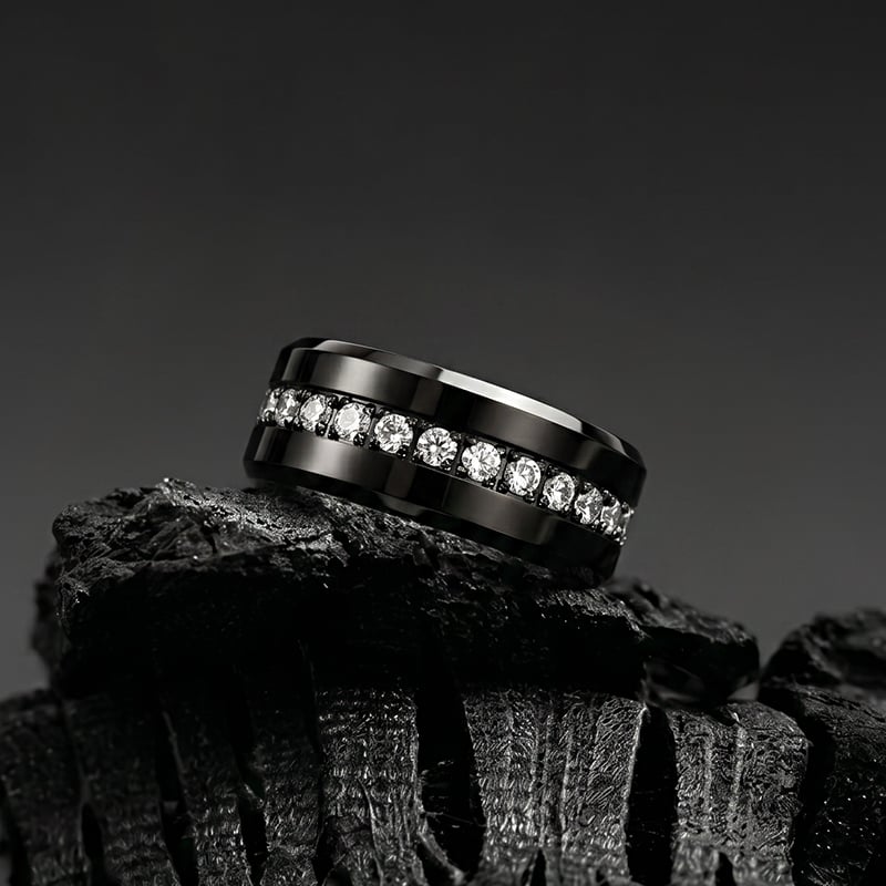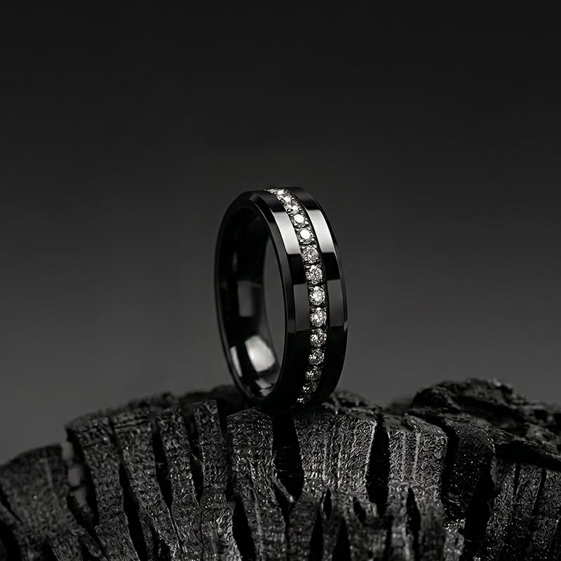 Strength is often found in the quietest depths. The Jeulia Classic Black Tungsten Wedding Band represents a love that is both unshakeable and refined, combining the enduring resilience of tungsten with a striking midnight finish. A single, seamless row of brilliant accents cuts through the darkness, like starlight guiding a steady path. Built to withstand the test of time while maintaining its bold, polished edge, this eternity band ring is a silent vow of constancy for the man whose commitment is as solid as it is deep.