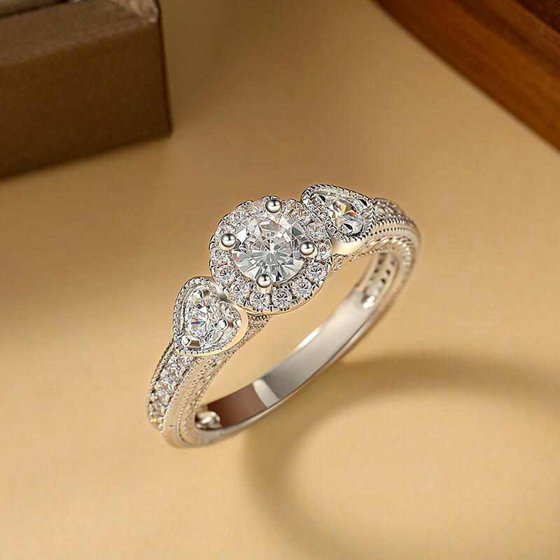 Jeulia Classic Custom Halo Three Stone Wedding Eternity Ring