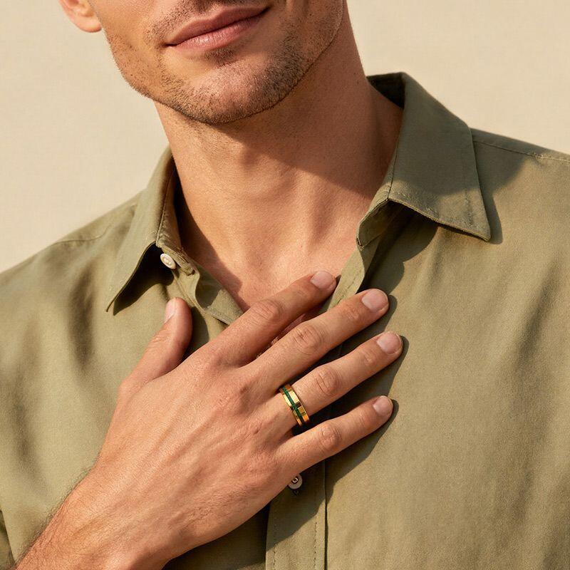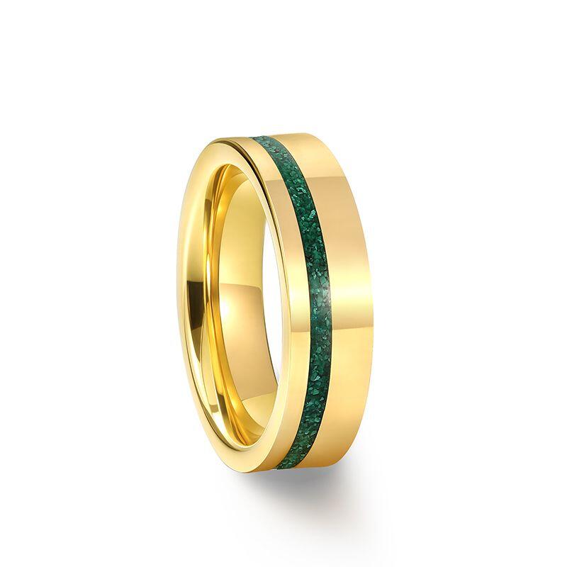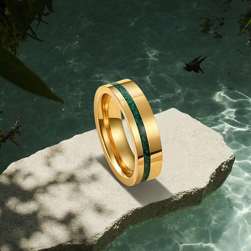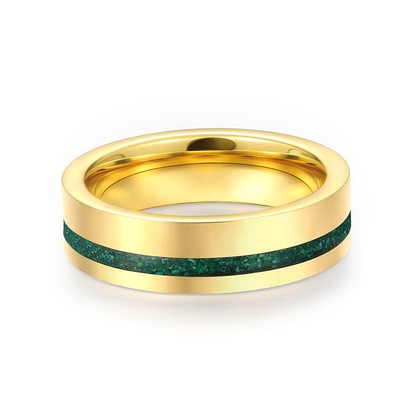 The Jeulia Classic Men's Gold Tungsten Ring is a sophisticated piece that perfectly combines durability and style. Crafted from high-quality tungsten steel, this minimalist ring features a striking gold finish accented by a unique malachite, creating an eye-catching contrast. The ring’s sleek design makes it suitable for everyday wear or special occasions, while the tungsten material ensures exceptional strength and scratch resistance. Its modern aesthetic and bold colors make this malachite ring an ideal choice for those looking to express their individuality. Whether for an engagement, wedding, or as a fashion statement, this men’s band is a perfect representation of timeless elegance and contemporary flair. Embrace your style with the Jeulia Classic Gold Tungsten Wedding Band, a ring that embodies both sophistication and strength.