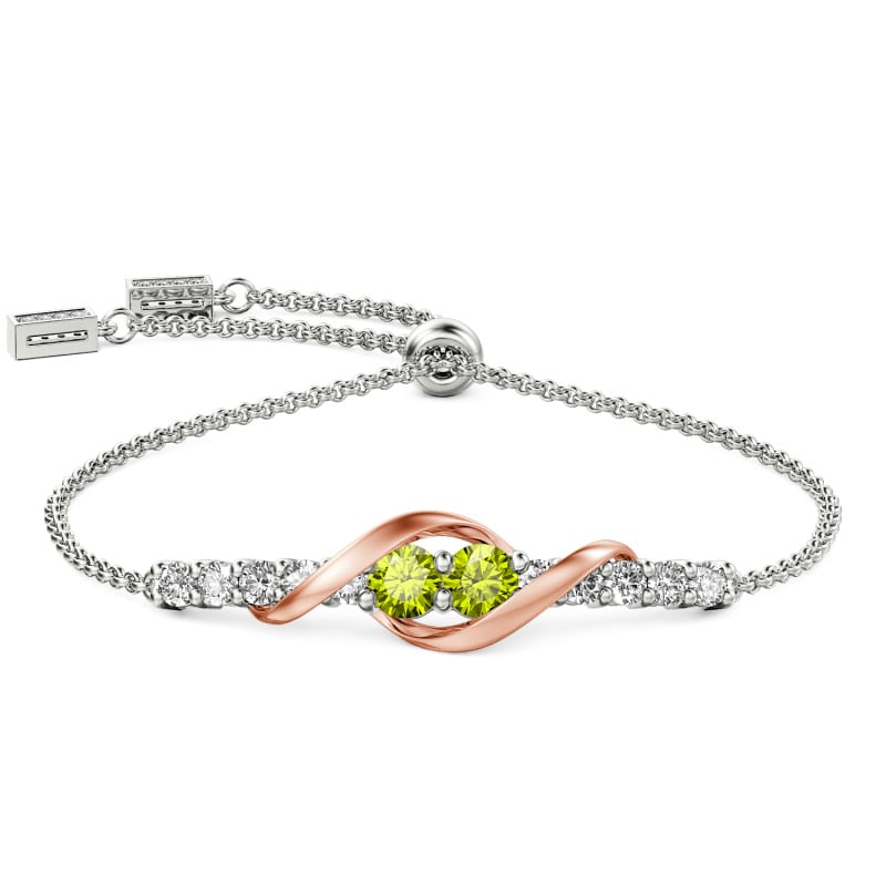This classic custom bracelet resembles an elegant ribbon that encircles a row of shimmering round main stones that radiate with sparkle. The customization options for the metal and main stones make it a one-of-a-kind gem that reflects individuality and taste. Let this bracelet accompany you and embellish your wrist with sparkle and shine, emphasizing your unique charm and temperament.