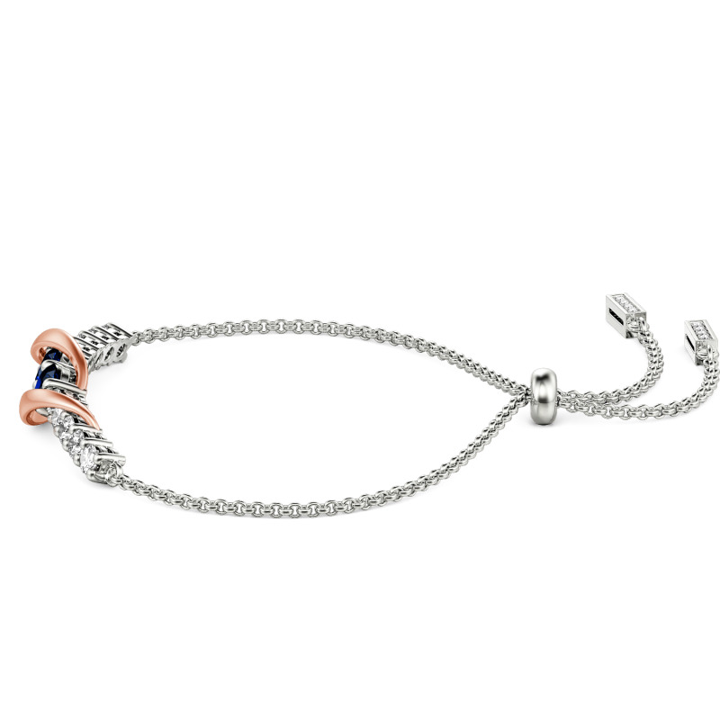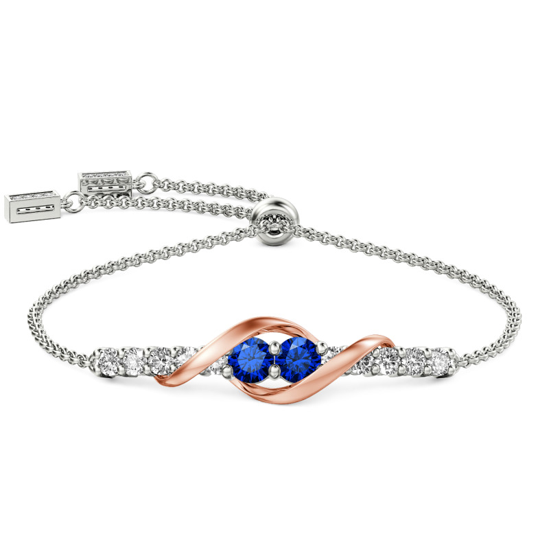 This classic custom bracelet resembles an elegant ribbon that encircles a row of shimmering round main stones that radiate with sparkle. The customization options for the metal and main stones make it a one-of-a-kind gem that reflects individuality and taste. Let this bracelet accompany you and embellish your wrist with sparkle and shine, emphasizing your unique charm and temperament.