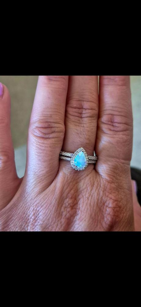 Jeulia Classic Pear Cut Opal Ring Set Sterling Silver