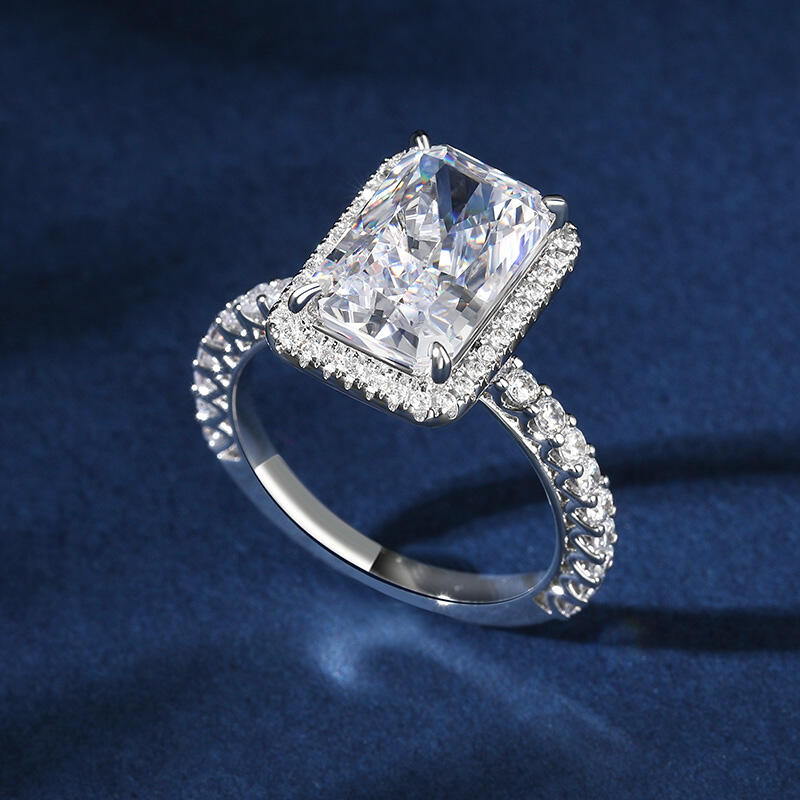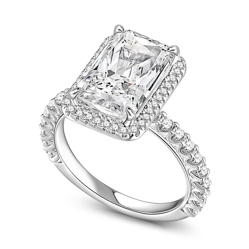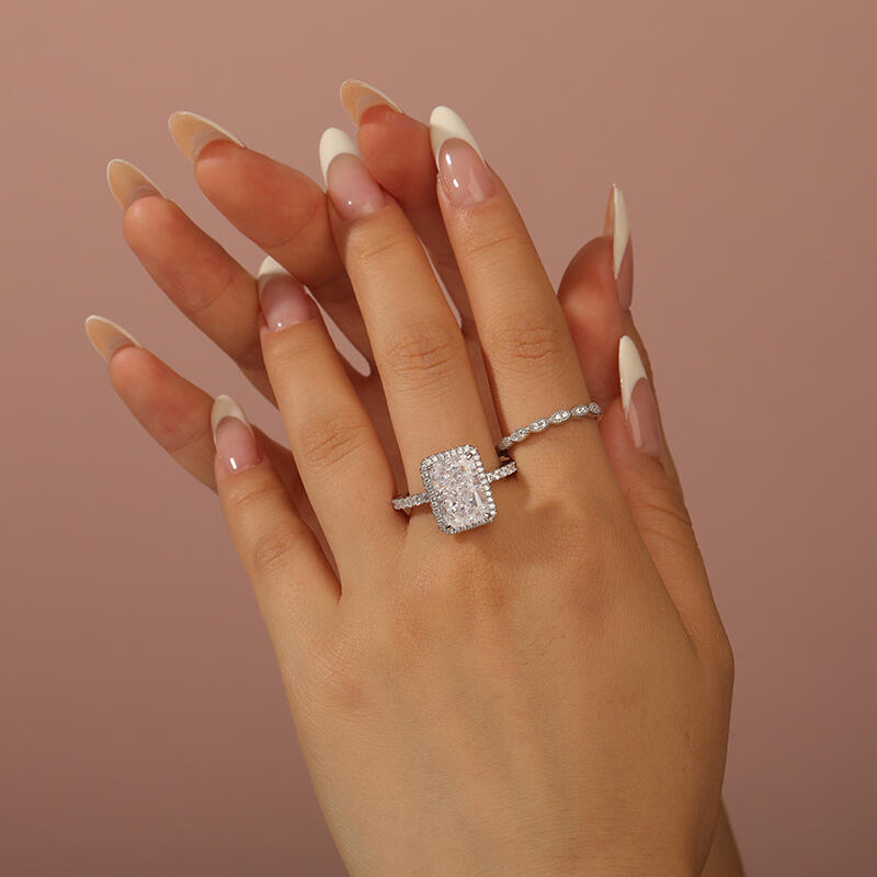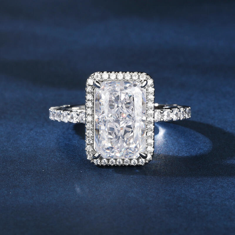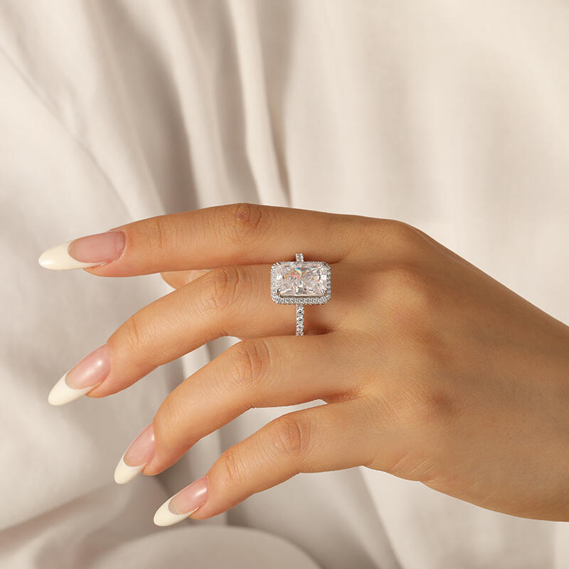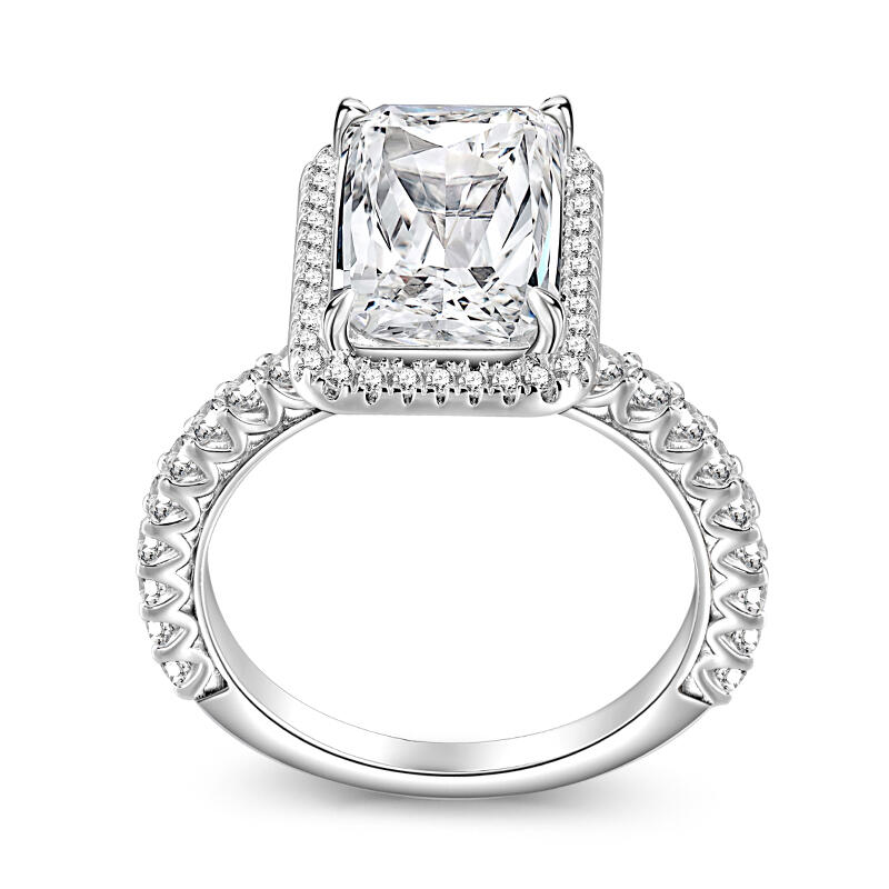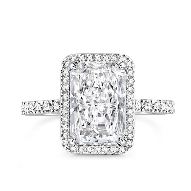 Symbolizing the everlasting bond of love, this exquisite piece showcases a radiant-cut stone that dazzles with its brilliance and fire. The unique facets of the radiant cut create a stunning play of light, capturing the essence of your love story. Crafted with meticulous attention to detail, this ring embodies the perfect blend of sophistication and grace. Its sleek silver band adds a touch of modernity, while the radiant-cut stone takes center stage, radiating a captivating sparkle that will leave a lasting impression.With its classic design and enduring beauty, this radiant-cut engagement ring is a testament to your eternal love. Let it be a symbol of the promises you make to each other, a reminder of the journey you embark upon together.