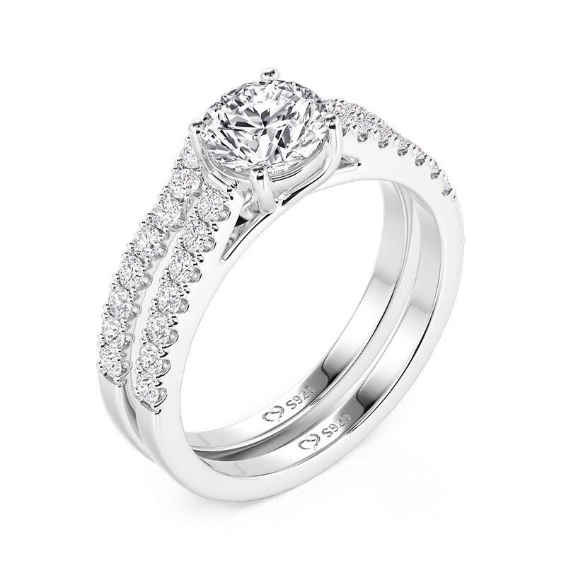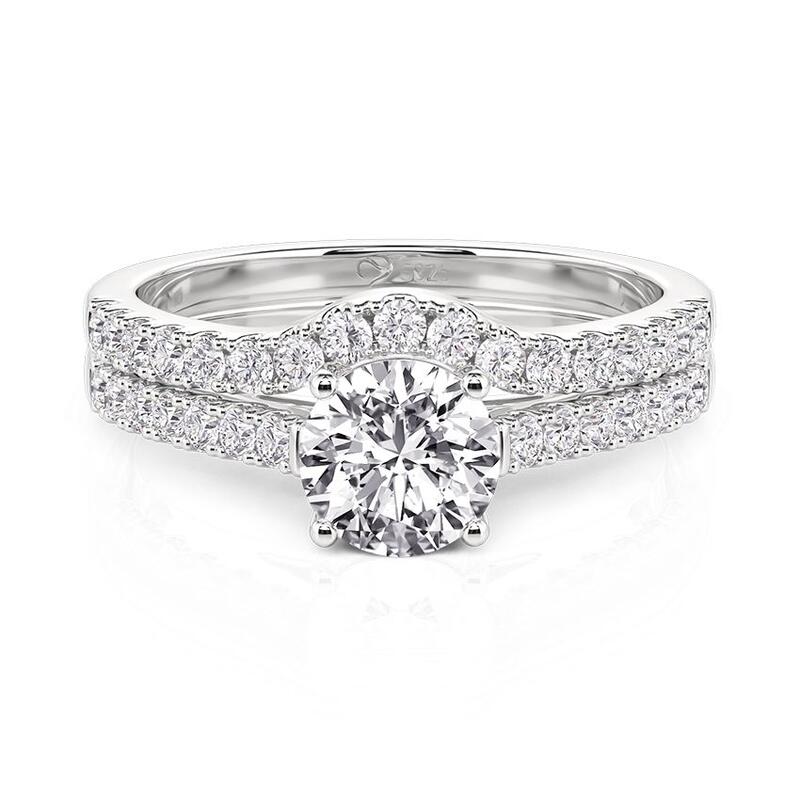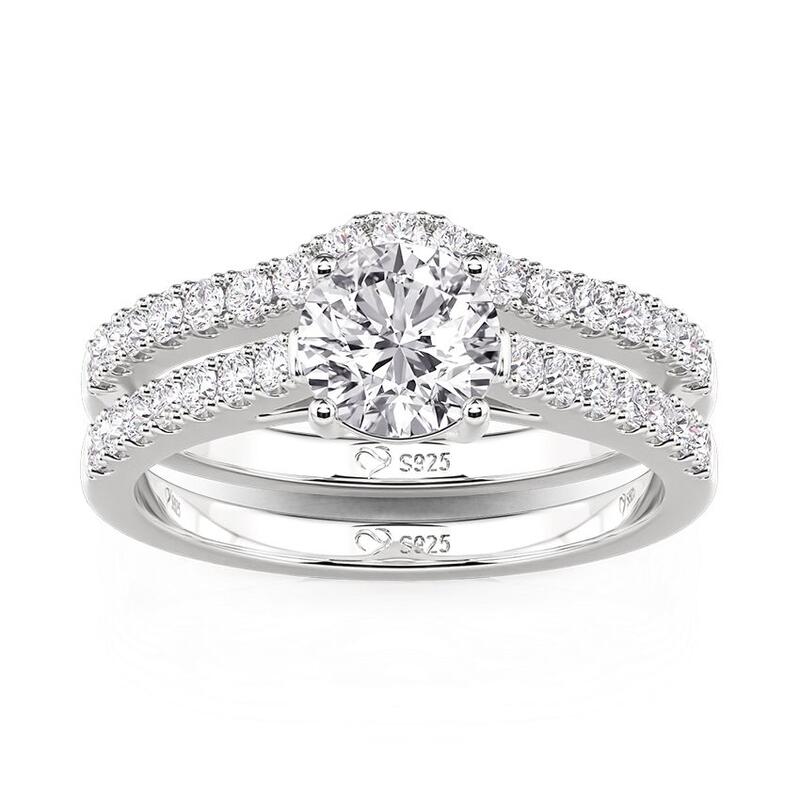 Jeulia Classic Round Bridal Set with Pavé Band Sterling Silver