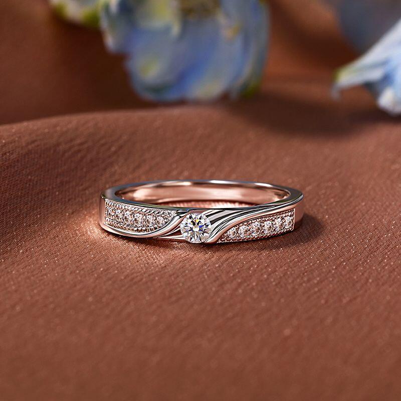 Two rose gold bands curve like embracing arms around a central stone, their paths traced with micro-set gems that catch light with every movement. The bypass design creates a sense of gentle motion. This Jeulia Round Cut Pave Engagement Ring is where promise and playfulness share the same delicate frame.