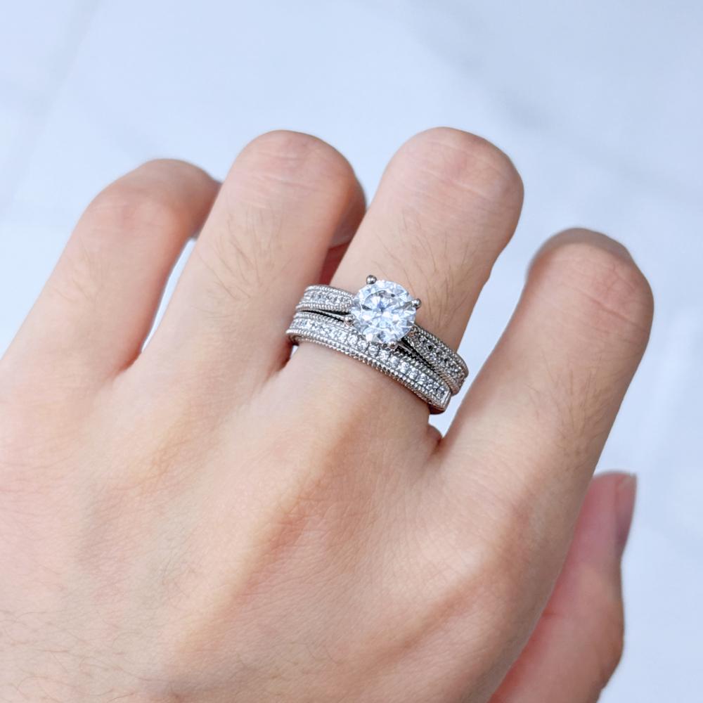 Jeulia Classic Round Cut Sterling Silver Ring Set
