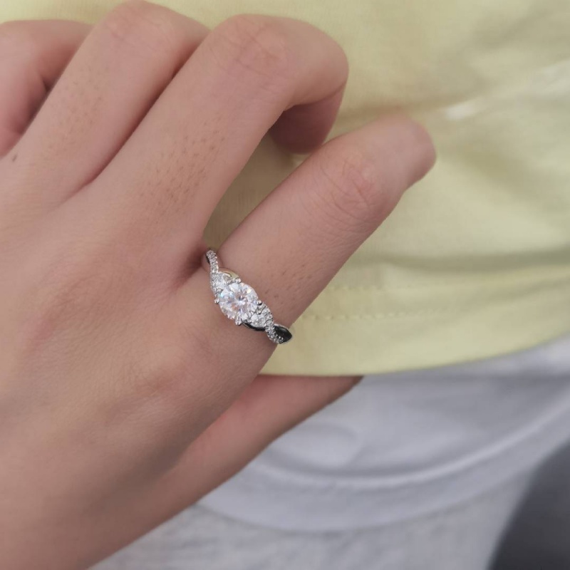 The Jeulia Classic Twist Custom Round Three Stone Ring features three stones ascending along a spiraling silver band: a round white zircon flanked by pear-cut companions, their graduated sizes creating a harmony of light and form. Customize the gem colors to mirror your story—icy diamond-like brilliance or soft pastel dreams. The twist design ensures every angle catches the light, a timeless piece that adapts to your narrative.