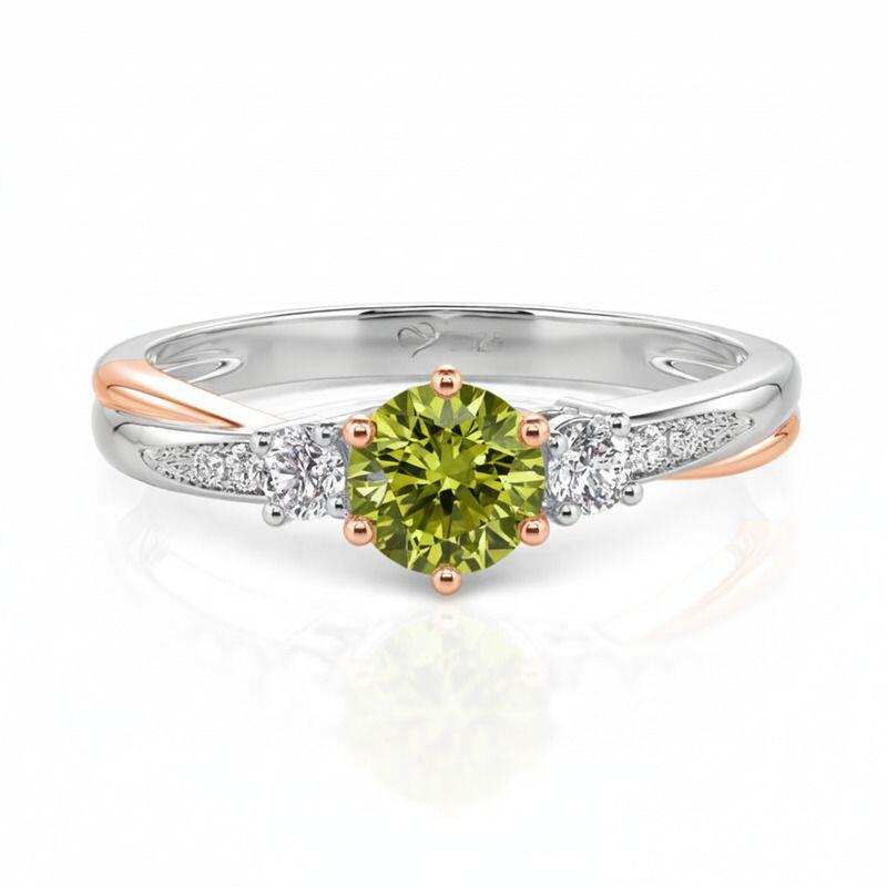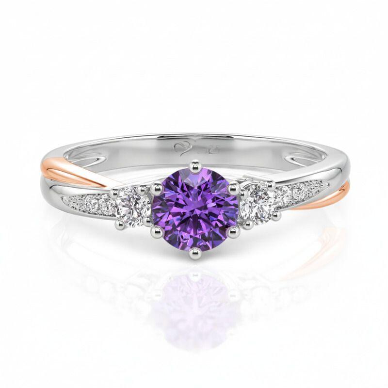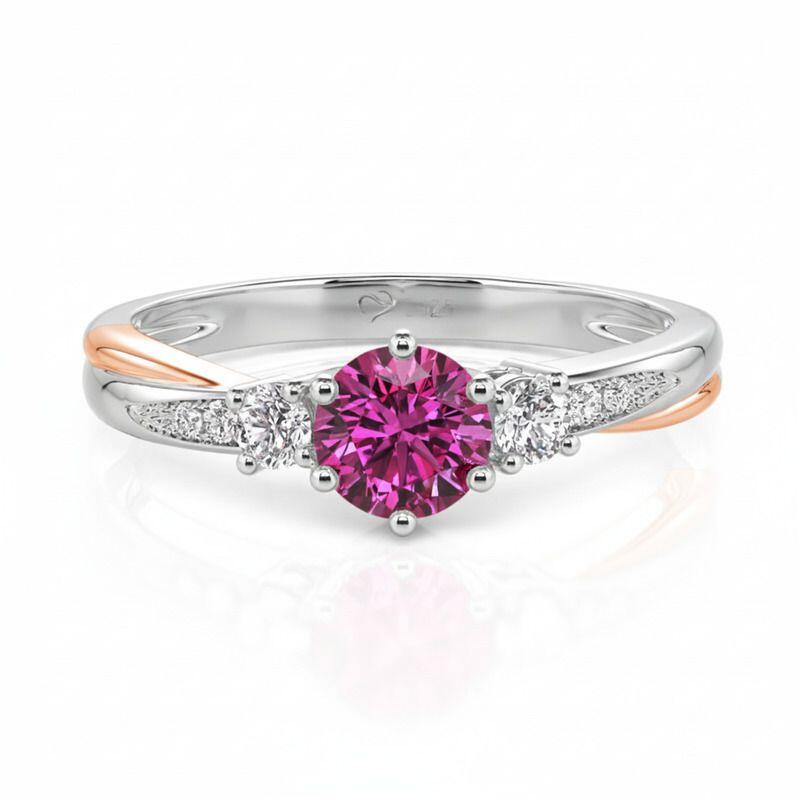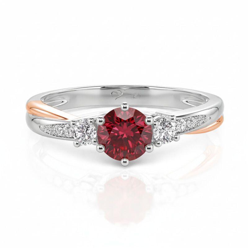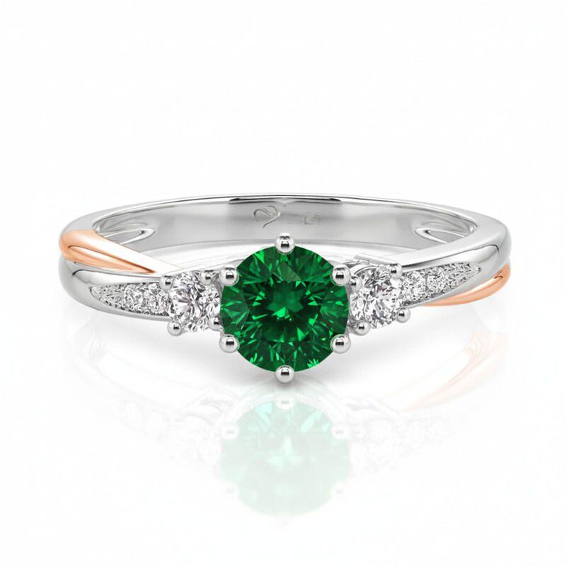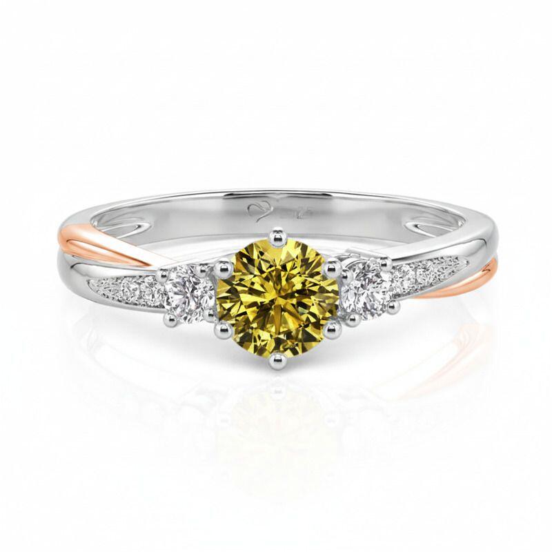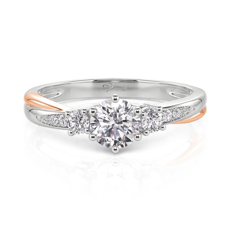 Jeulia Classic Two Tone Twist Three Stone Round Engagement Ring