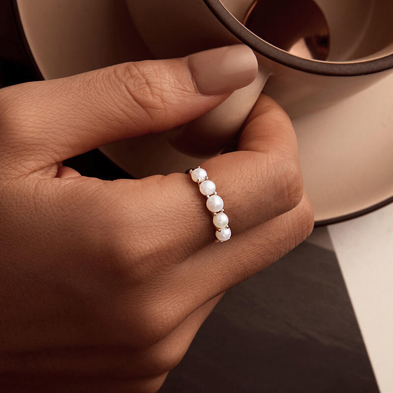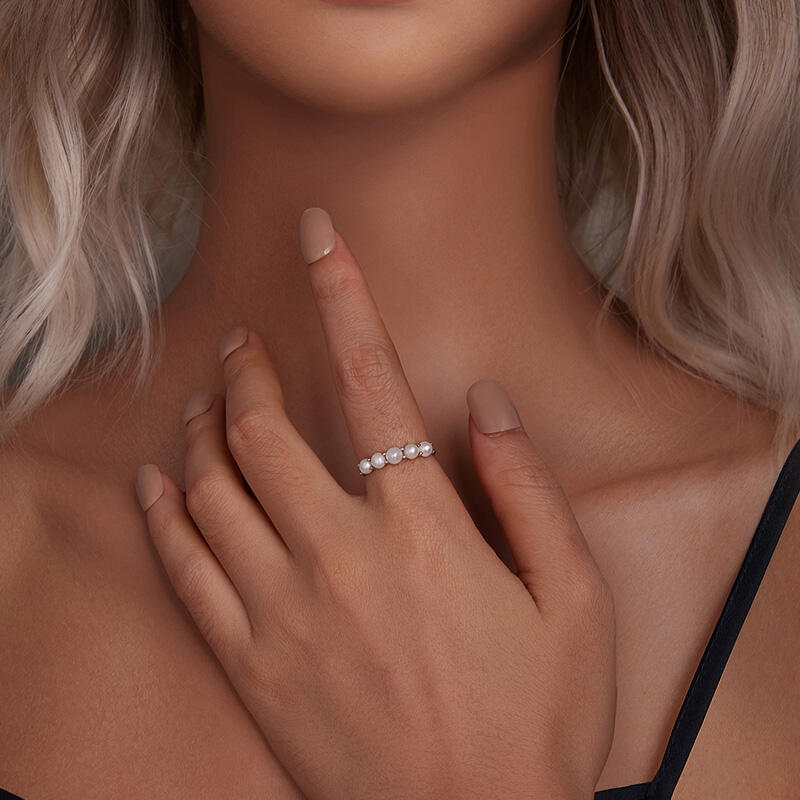 Elegance meets sophistication in this stunning piece, crafted to perfection.The gleaming sterling silver band effortlessly complements the natural beauty of the pearls, creating a timeless and captivating design. Each pearl represents a moment in time, a cherished memory, or a symbol of love and grace. With their radiant glow, they capture the essence of purity and refinement.