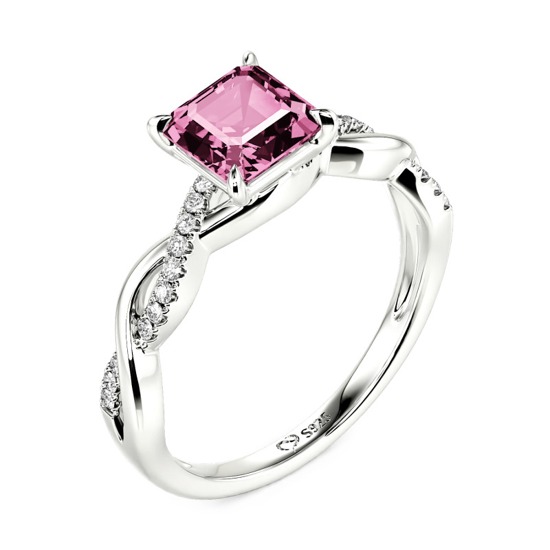 This cool wedding ring with asscher cut and twist design is the perfect symbol of love. The main stone is an Asscher Cut, which gives it a unique geometric beauty and sparkle, as if it were a flickering flame of love in your heart, while the twist design of the ring is classic and chic, symbolizing your vows to hold each other together and never be apart. Not only can the main stone be customized to suit your taste, but the design of the engagement ring arm can also be tailored to make this wedding ring a perfect fit for your love story. Whether you wear it with your wedding dress or on a daily basis, this custom engagement ring will shine on your fingertips, carrying your firm commitment and deepest blessings.