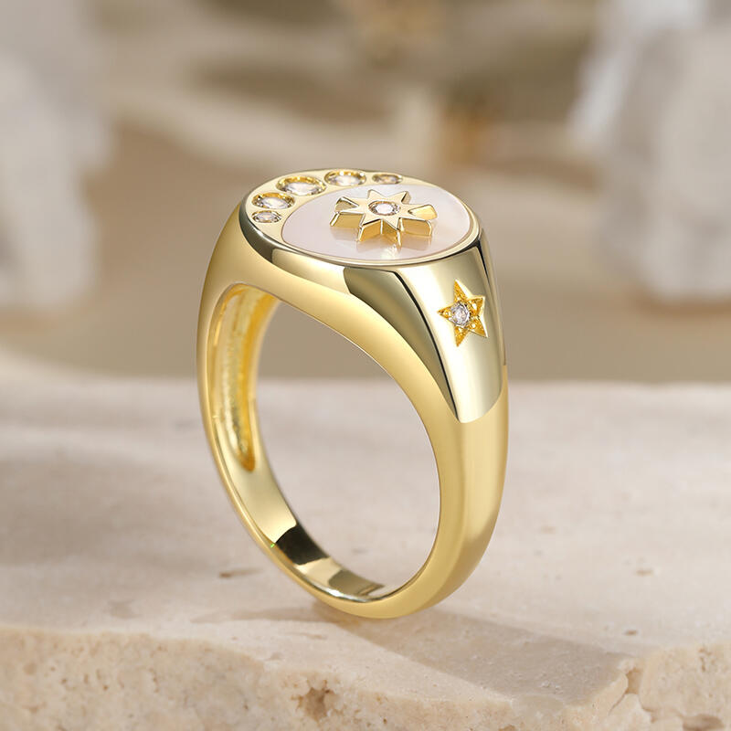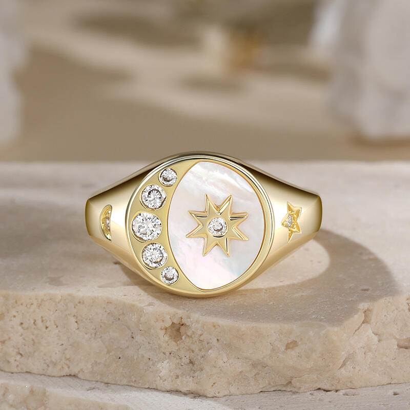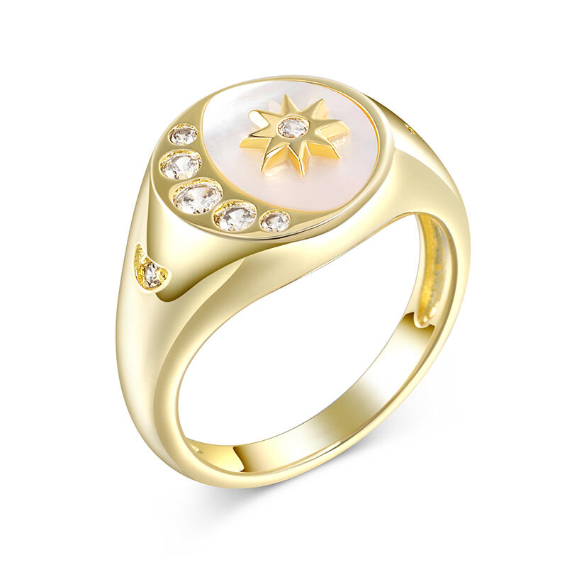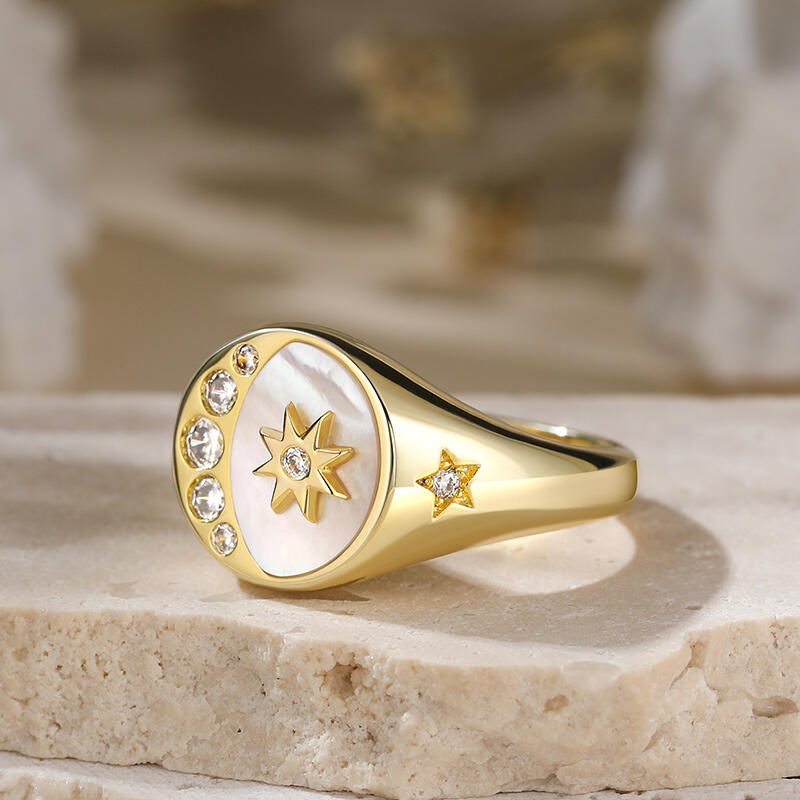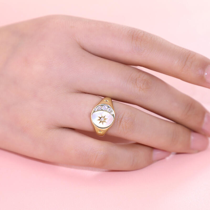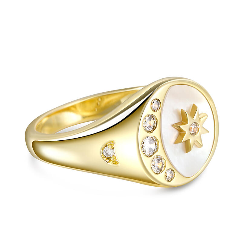 Jeulia Crescent Moon Star Signet Sterling Silver Ring