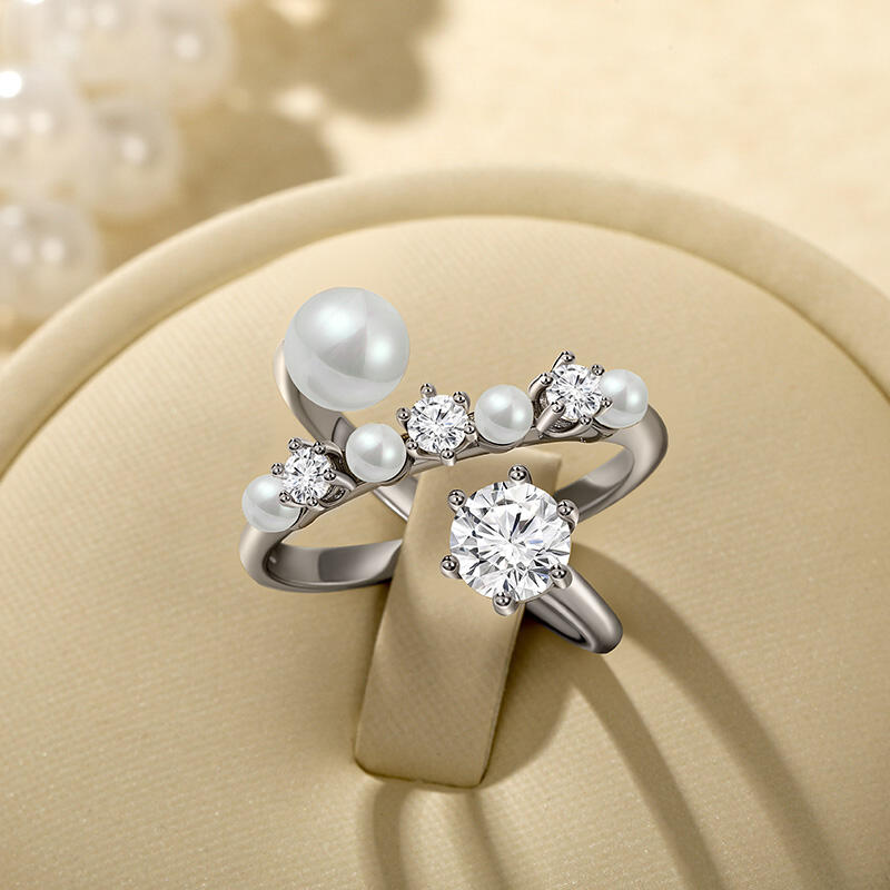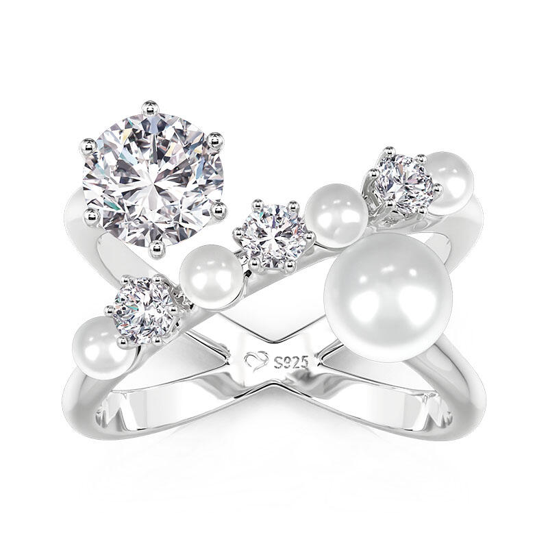 Jeulia Crossover Round Cut Pearl Ring for Women Sterling Silver