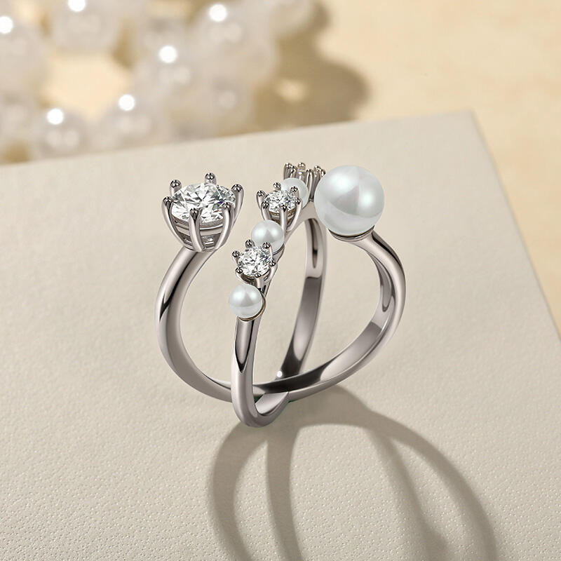 This Jeulia crossover silver ring for women is a perfect blend of elegance and charm for everyday wear. This pearl ring features a unique crossover design, where two sleek sterling silver bands gracefully intersect, creating a modern and stylish silhouette. A large, brilliant round - cut gemstone takes center stage, radiating a captivating sparkle that catches the eye. Alongside it, a collection of lustrous pearls and smaller round - cut stones are artfully arranged. The pearls, with their smooth, creamy surfaces and natural sheen, contrast beautifully with the sparkling stones, adding a touch of classic femininity. Crafted with meticulous attention to detail, this silver ring is not only a stunning piece of jewelry but also durable enough for daily use. Whether you're heading to the office, meeting friends for coffee, or running errands, this crossover ring effortlessly elevates your look, making it a must - have accessory for every woman's jewelry collection.