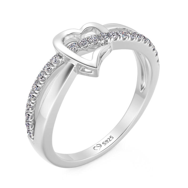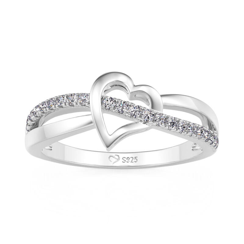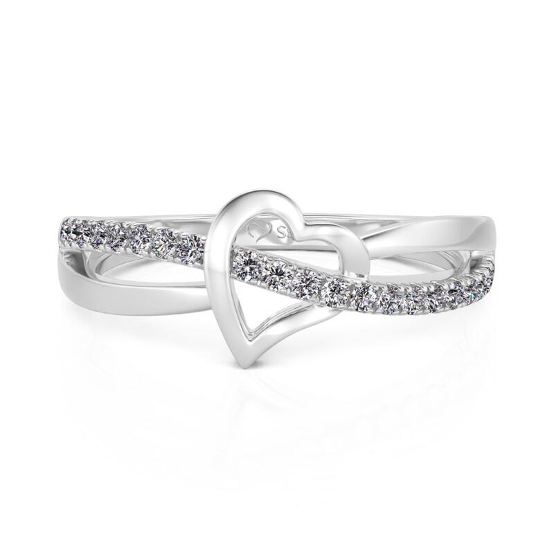 Jeulia Crossover Women's Heart Ring Sterling Silver