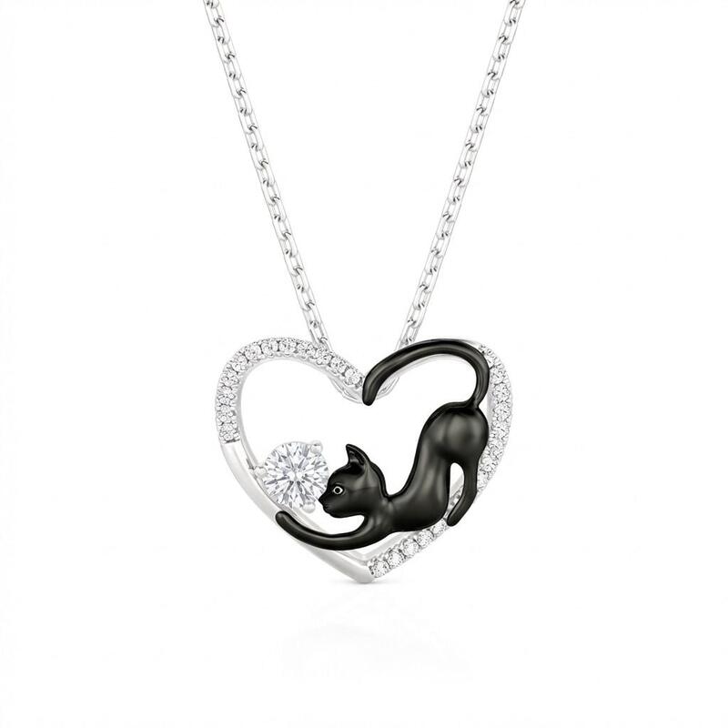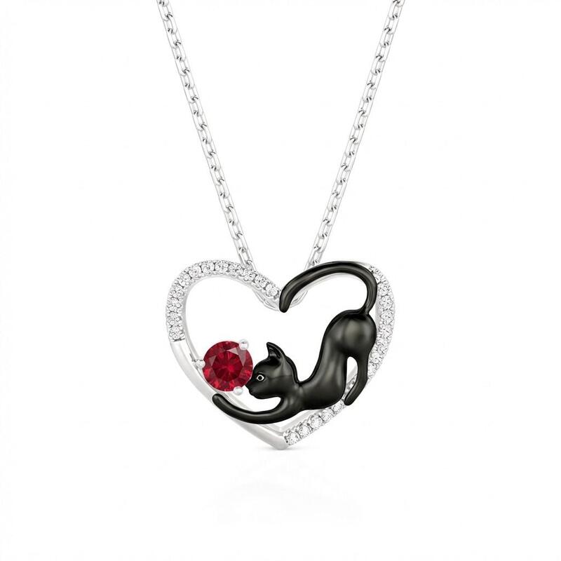 The Jeulia Custom Black Cat Heart Necklace with Birthstone combines playful charm, everyday wearability, and personal meaning in one polished piece. A pavé-trimmed heart frames a sleek black cat that reaches toward a customizable birthstone, with secure settings and precise finishing that keep the pendant sparkling and comfortable on the chain. Functionally designed for reliable daily wear, the balanced composition ensures the birthstone remains the focal point while the cat and heart create a distinctive silhouette. Emotionally versatile, this black cat necklace symbolizes affection, protection, and playful devotion—perfect as a birthday, anniversary, or “just because” gift, and equally suited for gifting to cat lovers or anyone who treasures a meaningful, wearable reminder of someone special.