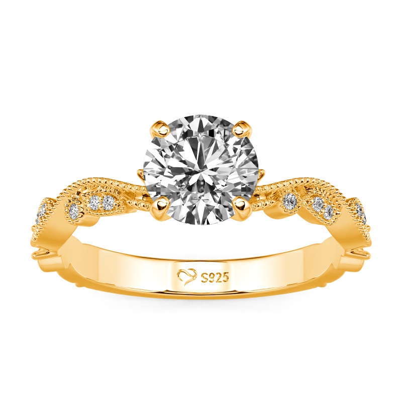 Embrace nature-inspired sophistication with the Jeulia custom botanical inspired beaded round engagement ring . Featuring a brilliant round center stone, flanked by intricate botanical elements and delicate beaded detailing, this leaf ring blends organic charm and customizable luxury. Perfect for engagements, this botanical ring is a timeless design that celebrates nature’s beauty and personal style with every glimmer.