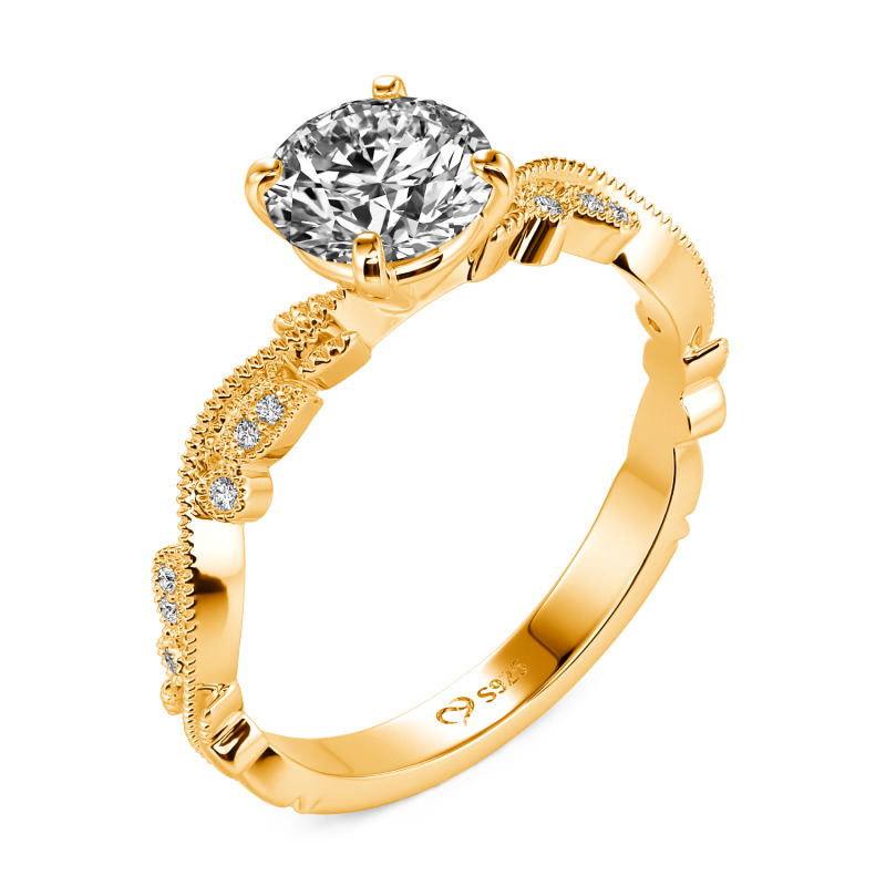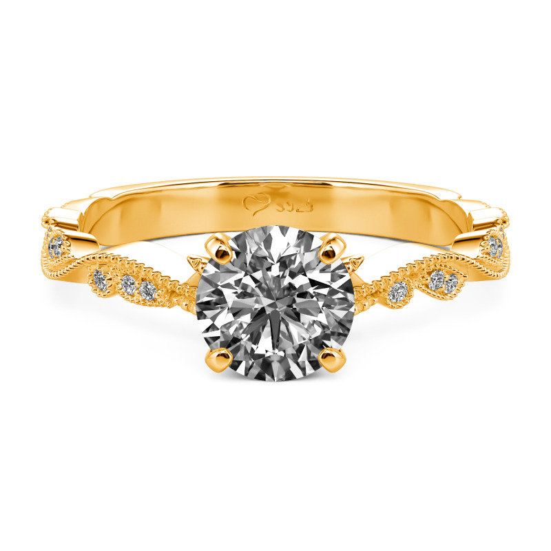 Jeulia Custom Botanical Leaf Beaded Round Engagement Ring