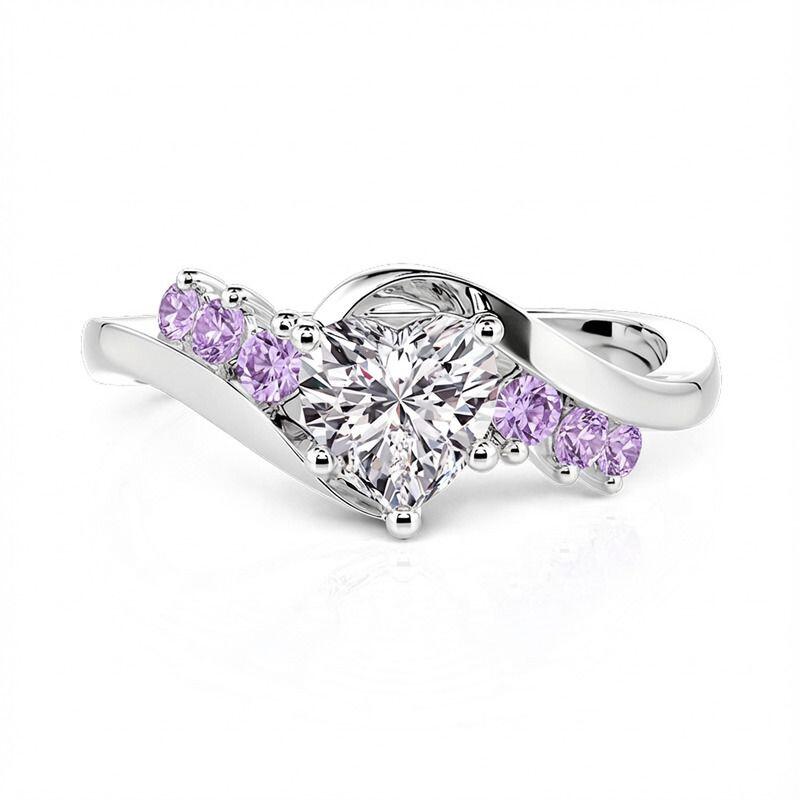 Jeulia Custom Bypass Heart Engagement Ring With Birthstone