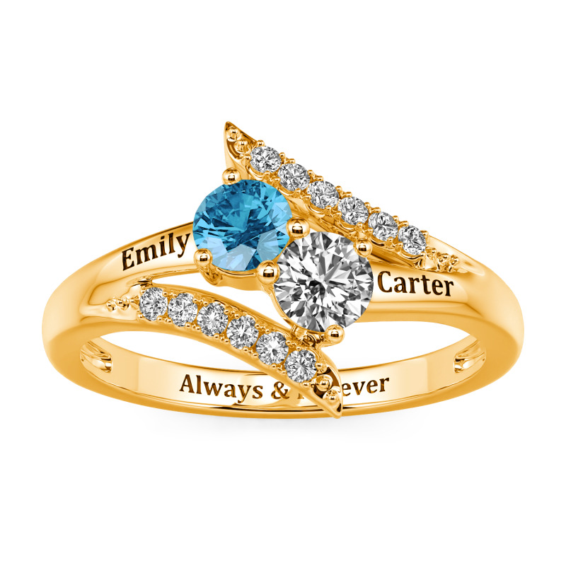 Jeulia Custom Bypass Two Stone Name Ring