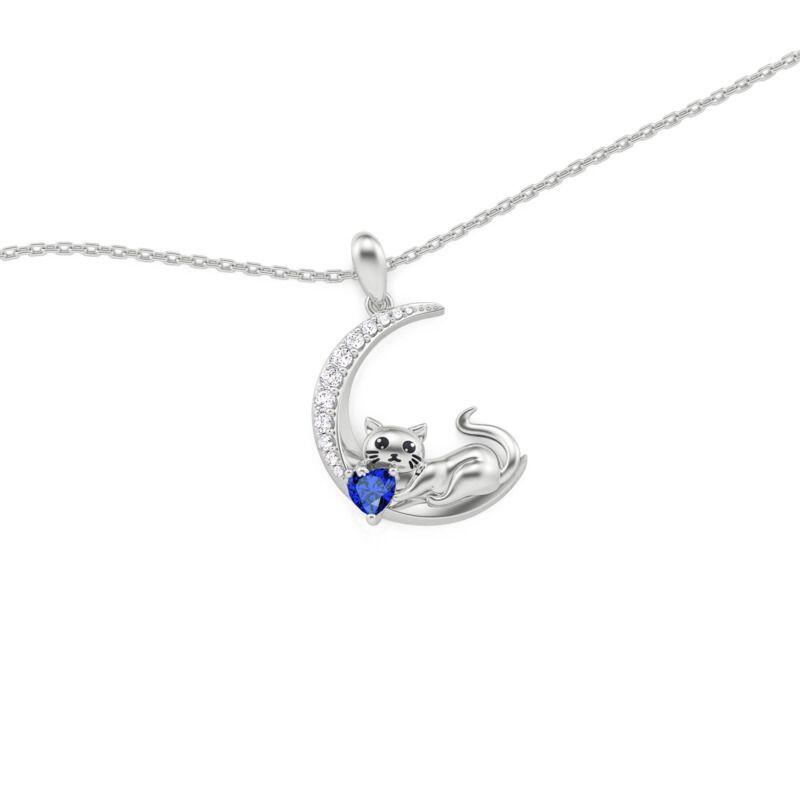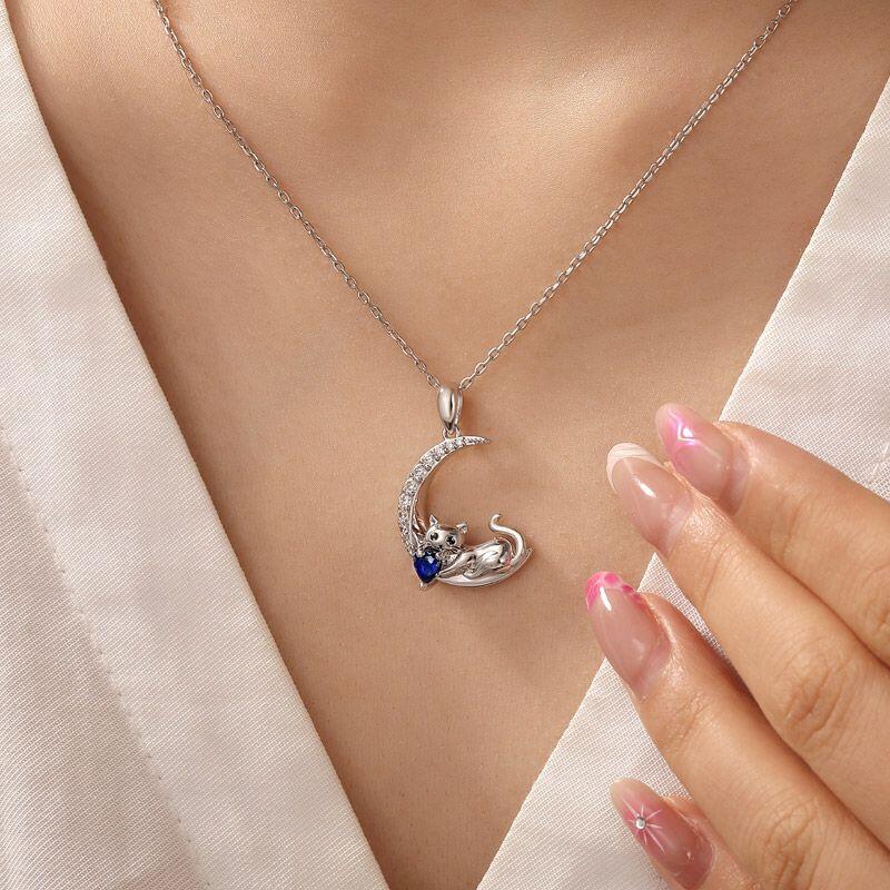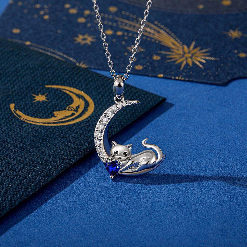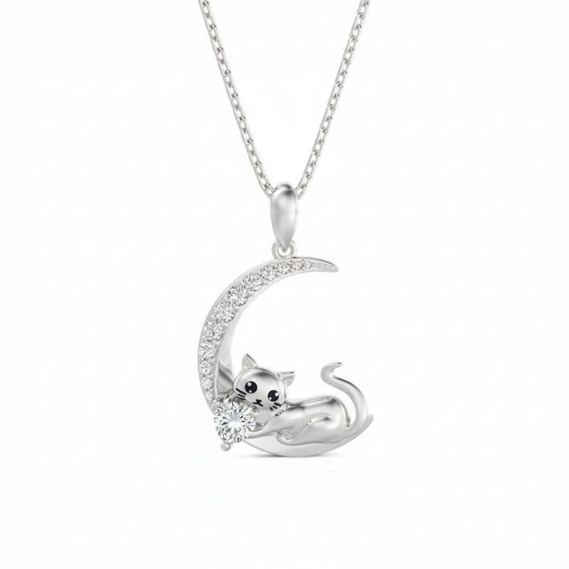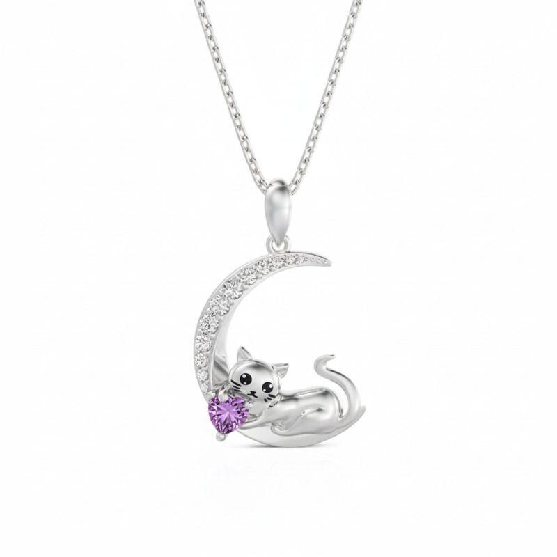 Jeulia Custom Cat Moon Birthstone Necklace Sterling Silver