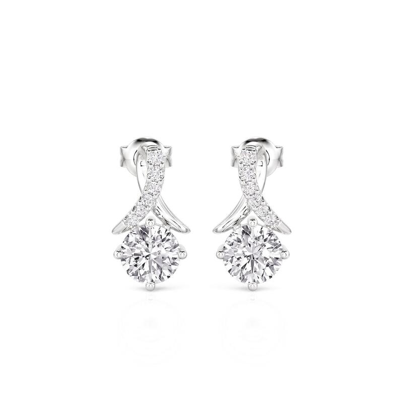Round stones glow within four-prong settings atop each earring, their hues yours to choose as birthstones or personal emblems. Above each gem, delicate curves paved with tiny sparks frame the light—These Jeulia Personalized Round Birthstone Stud Earrings are a timeless silhouette that lets your story take center stage, elegant enough for every day, special enough for forever.
