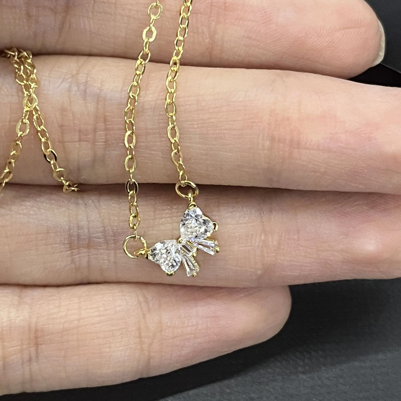 Jeulia custom double heart bow necklace with birthstone features a charming bow design crafted from two heart-shaped stones, symbolizing love and connection. Each heart-shaped stone can be customized in color, allowing for a personal touch that reflects meaningful relationships. This birthstone necklace not only serves as a beautiful accessory but also carries deep emotional value, making it an ideal gift for special occasions like anniversaries or birthdays. Its versatility allows it to be worn for various events, adding a touch of elegance to any outfit. Celebrate your unique bond with this bow necklace, blending emotional significance with functional beauty, creating a cherished keepsake for years to come.