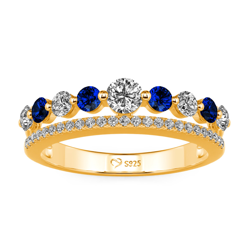 Elevate any moment with the Jeulia women's custom double row round cut wedding band. One row alternates large and small round stones, with customizable hues to craft a tailored color contrast. It balances minimalist elegance with subtle, playful color detailing: ideal for pairing with an engagement ring on your big day, or adding understated sparkle to casual outfits. A versatile blend of custom charm, double-row glow, and refined color contrast.