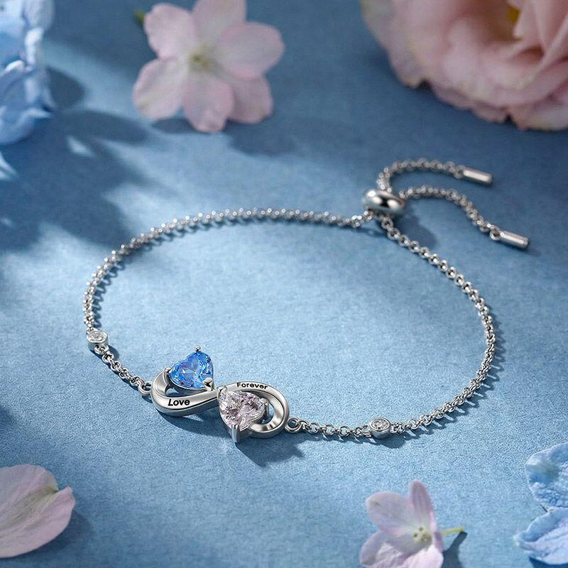 Jeulia Custom Engraved Infinity Bracelet with 2 Heart Birthstone