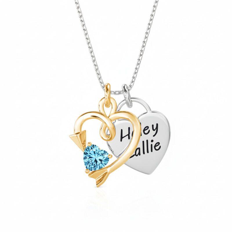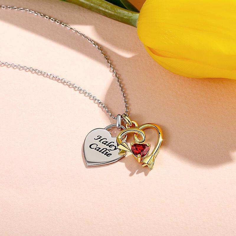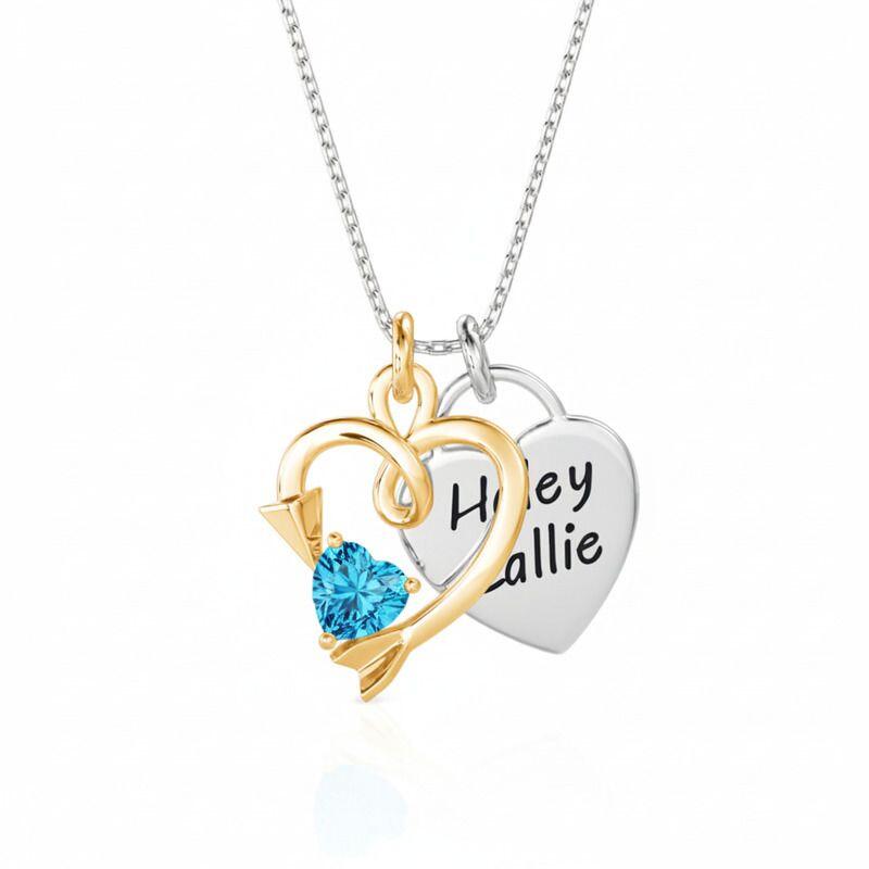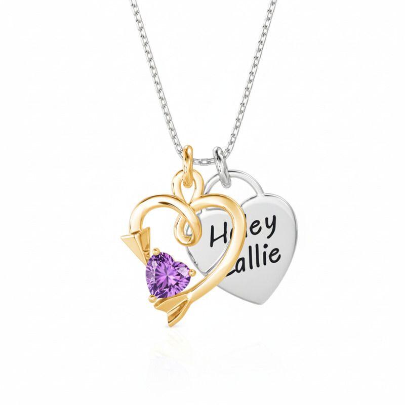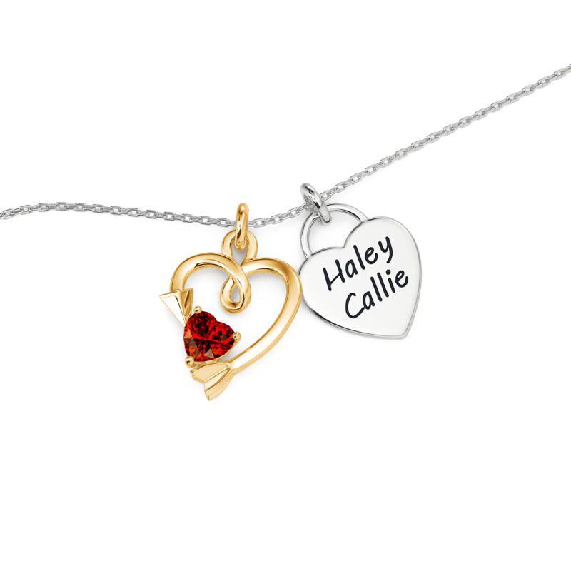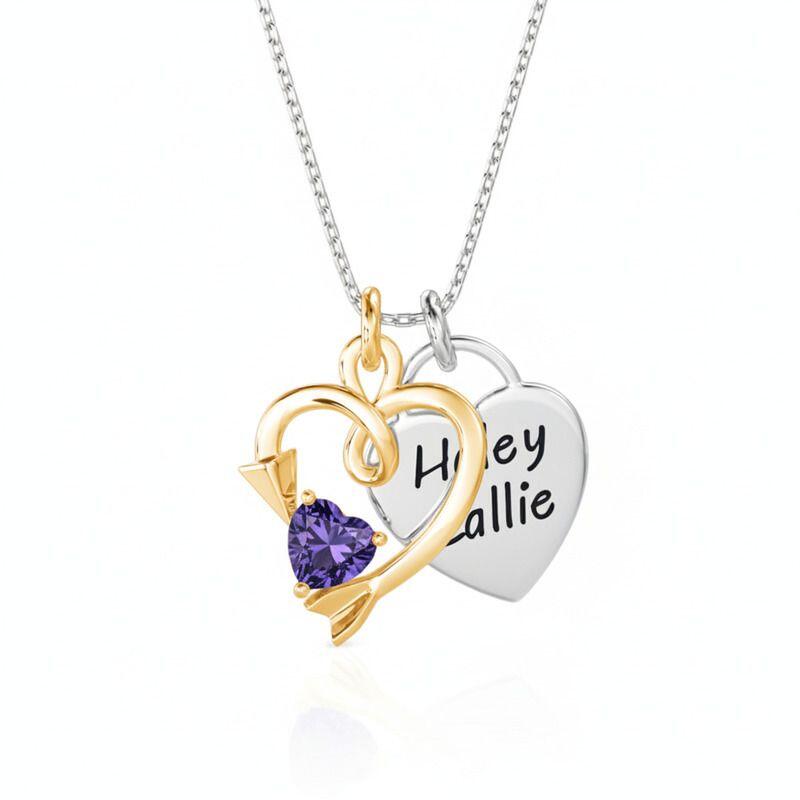 Jeulia Custom Engraving Birthstone Cupid's Arrow Heart Necklace