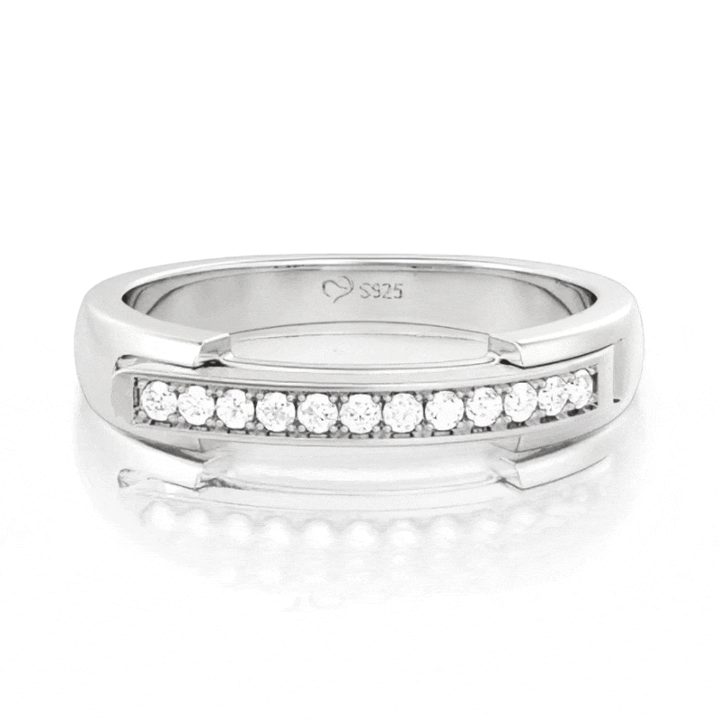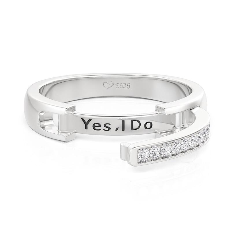 The Jeulia Custom Eternal Unity Locket Engraved Ring for Women is a stunning representation of love and commitment, designed to celebrate your unique bond. This elegant ring features a polished finish adorned with sparkling accents, and its distinctive split design allows for an intimate message to be engraved inside. Perfect for proposals, anniversaries, or as a cherished keepsake, you can customize this band with a special phrase or date that holds significance to you and your partner. This simple silver ring beautifully combines style and personalization, making it a timeless piece for any occasion.
