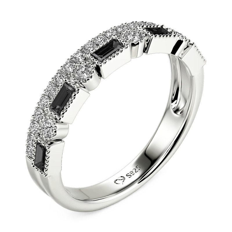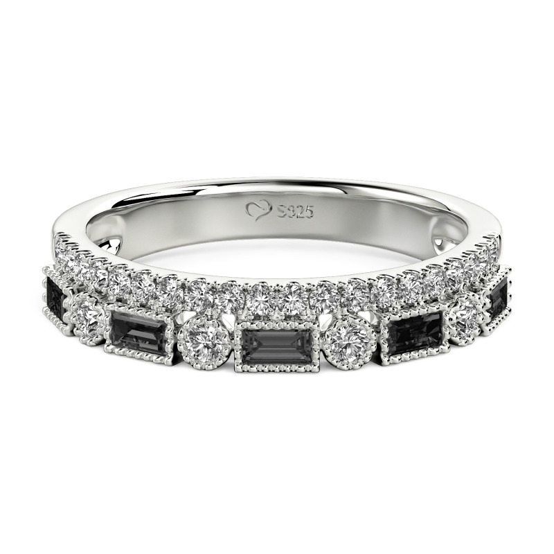 Jeulia custom eternity ring designed with dual pavé rows flank a central void—your curated stones (ruby gravel? sapphire ice?) inlayed like mosaic tiles on a minimalist band. Mix metals: frosty silver strands braid with rose gold threads, their textures alternating between brushed silk and hammered concrete. The absence of a center stone declares autonomy—this is luxury democratized, where every gem, every hue, claims equal voice in your silent manifesto.