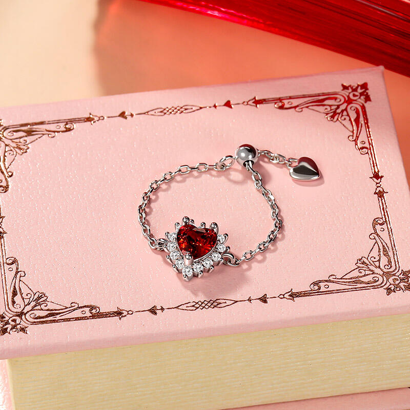 Jeulia Custom Halo Heart Adjustable Chain Ring