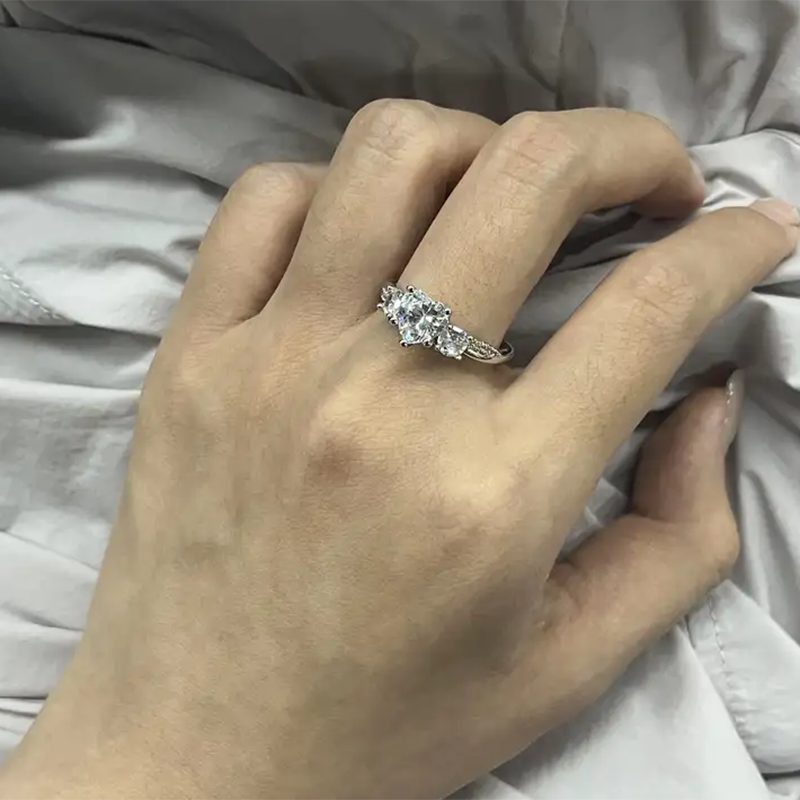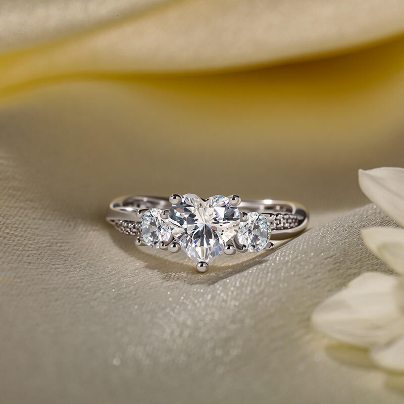 Jeulia Custom Heart Cut Twist Three Stone Engagement Ring