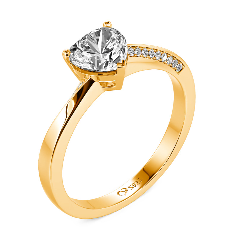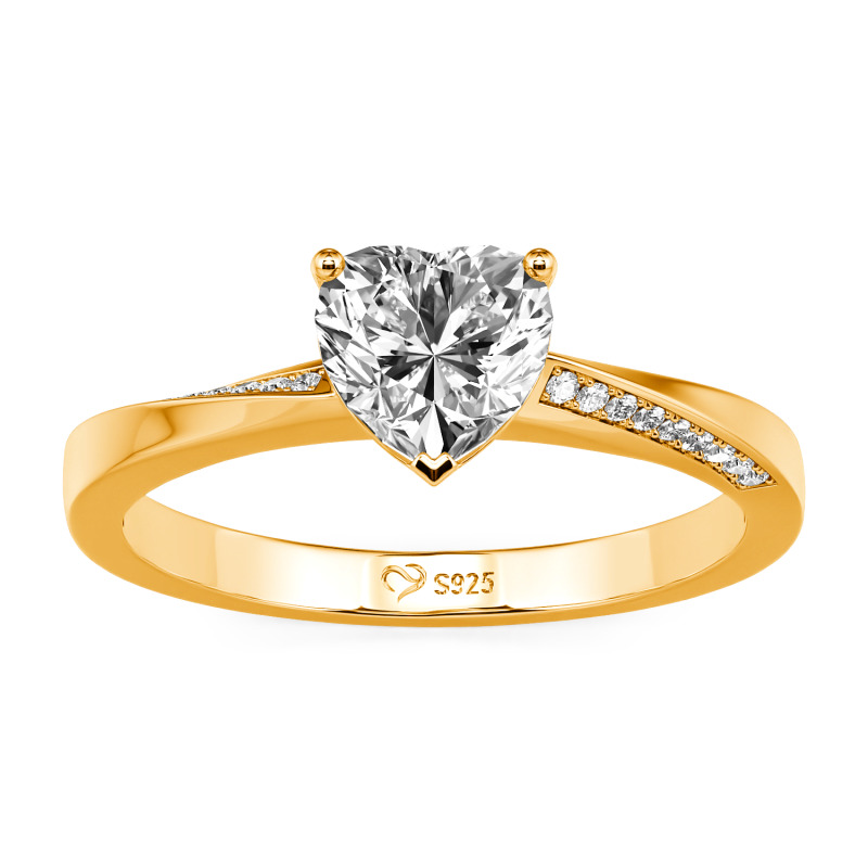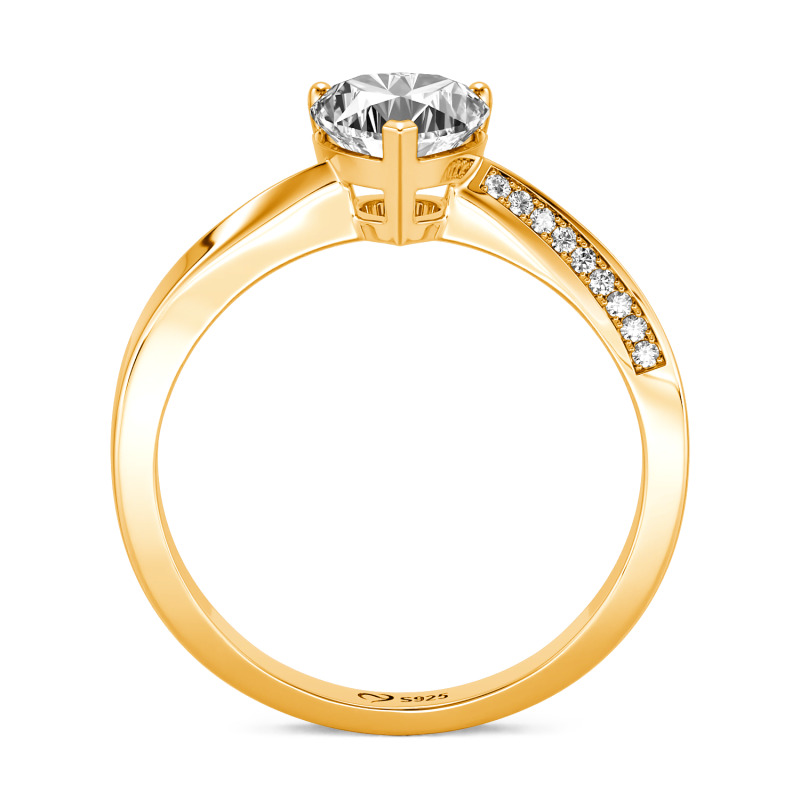This custom heart promise ring with twist band design features a heart-shaped center stone, symbolizing the love that binds you together. The twisted shank design of the promise ring adds a modern twist to traditional jewelry. The row of small stones that extend from one side of the ring to the other adds a dazzling sparkle. Choose from a variety of metal, stone, and color options to match your personal style or the preferences of your loved one to create a truly unique ring. Whether you're making a promise to your partner, treating yourself, or commemorating a special milestone, this custom heart promise ring is a perfect choice.