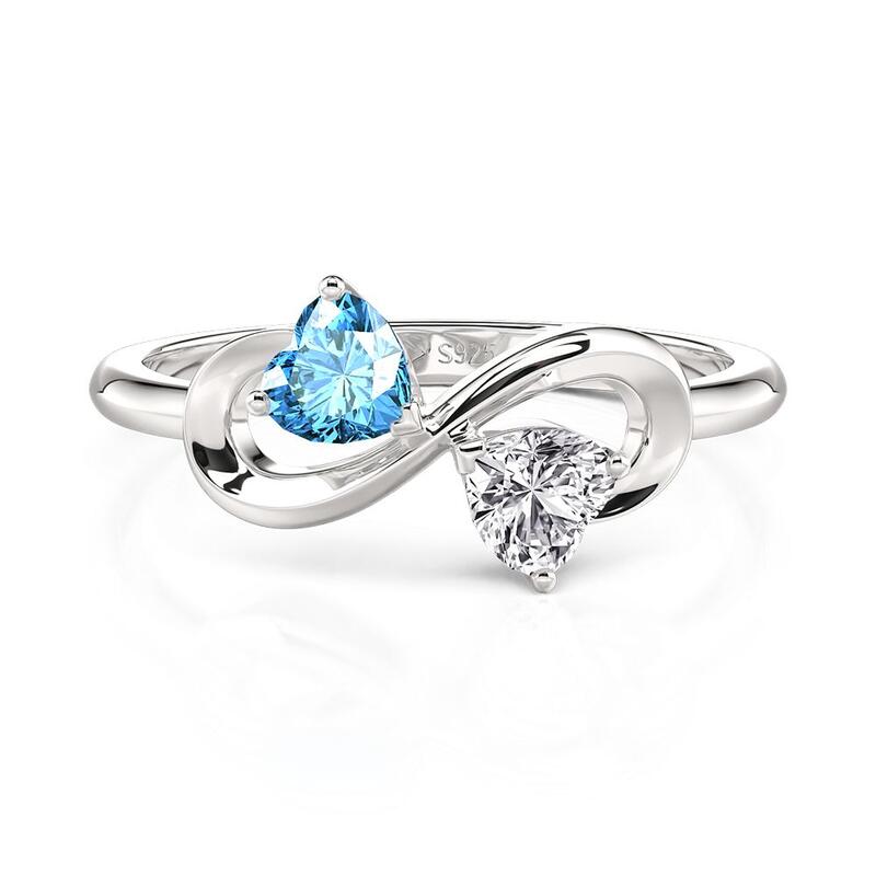 Two heart-shaped stones, customizable to your birthstone hues, nest within an infinite loop of polished silver. This Jeulia Infinity Double Heart Birthstone Ring is a double promise—one heart for yesterday, one for tomorrow, circling each other in an ever-turning loop of memory and hope.