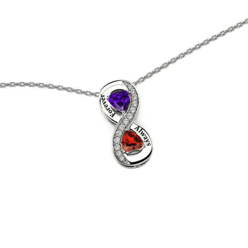 Jeulia Custom Infinity Engraved Two Heart Birthstone Necklace