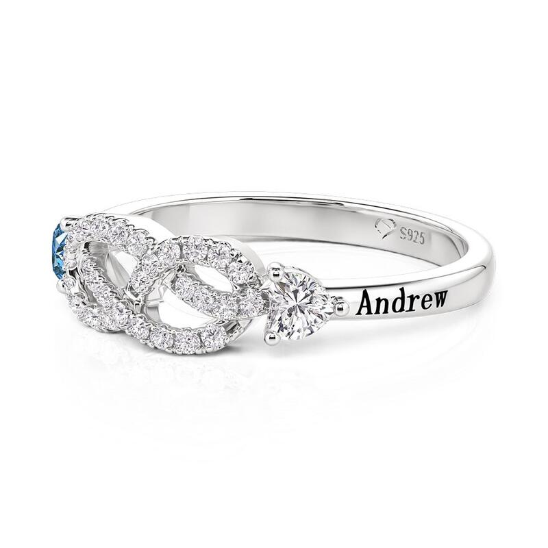 Jeulia Custom Knot Double Heart Birthstone Name Ring