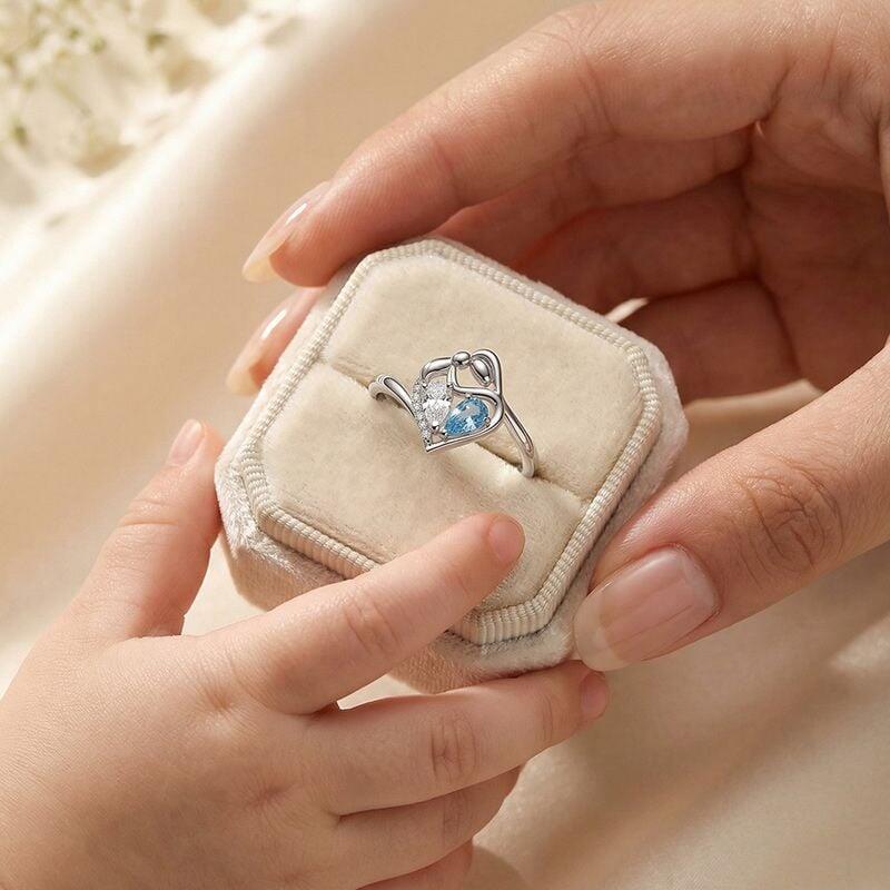 Jeulia Custom Mother-Child Heart Ring with Birthstone Engraving
