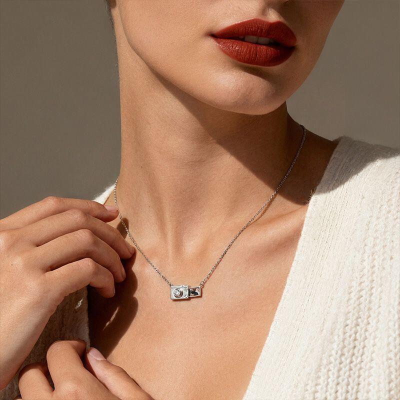 Jeulia Custom Photo Camera Necklace with Birthstone Engraving