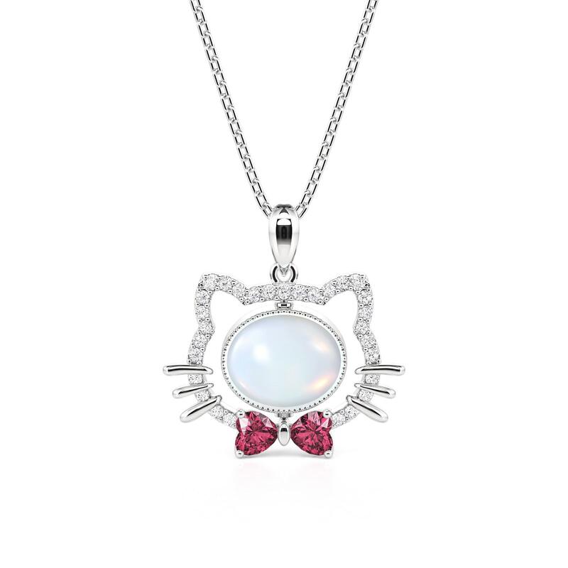 Jeulia Petland Custom Photo Rotatable Moonstone Cat Necklace