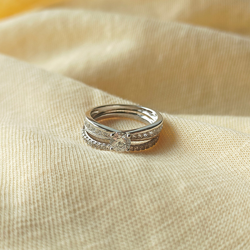 This Jeulia custom simple round engagement ring set with eternity band is classic and elegant. The main ring features a dazzling round brilliant-cut center stone as the focal point, securely set with four prongs to fully showcase its fire and brilliance. The sides of the band are adorned with delicate pavé stones, paired with a tapered band design that widens at the top and narrows at the bottom, making the fingers appear longer and more slender. The secondary ring also features a delicate row of stones, offering a sleek and sophisticated look when worn alone. When paired with the main ring, it creates a layered effect with enhanced brilliance. Whether for an engagement, anniversary, or everyday wear, this eternity ring set perfectly embodies the timeless promise of love.