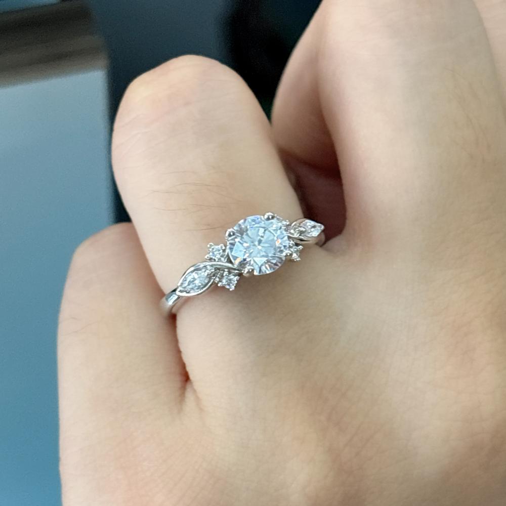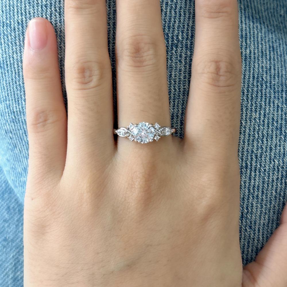 This Jeulia custom round-cut engagement ring draws inspiration from the mathematical infinity symbol, encapsulating the eternal vows of love on the finger. The center features a round brilliant-cut main stone, whose 67 perfectly symmetrical facets sparkle with brilliant fire. The silver ring shank innovatively adopts a three-dimensional infinity symbol design, with two intertwined metal strands symbolizing eternal love, while visually extending the lines of the finger.