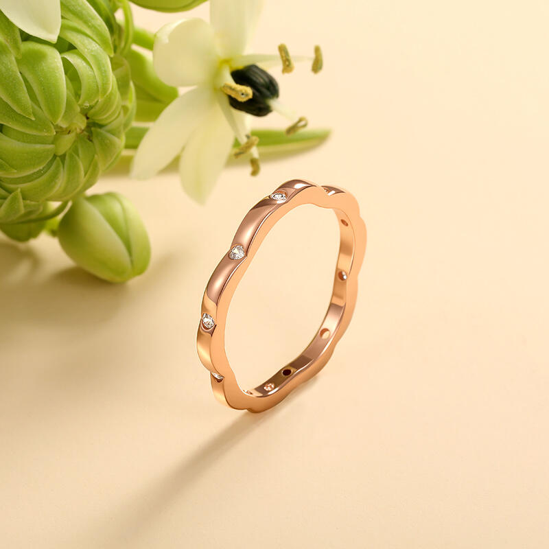 Jeulia sakura petal contour custom womens ring blends nature - inspired design with Personalized . Its gently curved, sakura - petal - shaped silhouette features spaced round - cut gemstones. Uniquely customizable, you can pick the metal plate color (yellow gold, rose gold, silver) and add birthstones for personal meaning. More than a ring, it’s a wearable symbol of self - expression, perfect for stacking or solo wear, turning jewelry into a cherished, tailor - made keepsake.