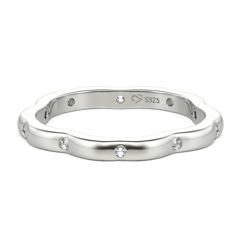 Jeulia sakura petal contour custom womens ring blends nature - inspired design with Personalized . Its gently curved, sakura - petal - shaped silhouette features spaced round - cut gemstones. Uniquely customizable, you can pick the metal plate color (yellow gold, rose gold, silver) and add birthstones for personal meaning. More than a ring, it’s a wearable symbol of self - expression, perfect for stacking or solo wear, turning jewelry into a cherished, tailor - made keepsake.