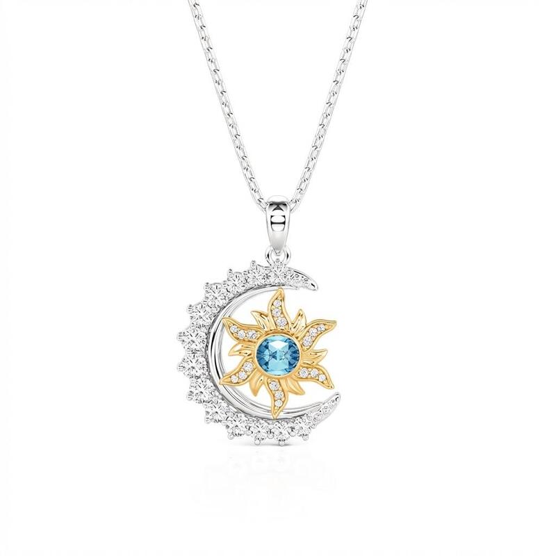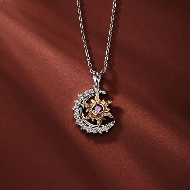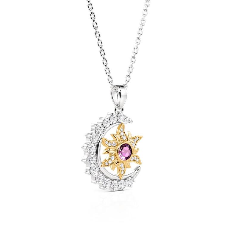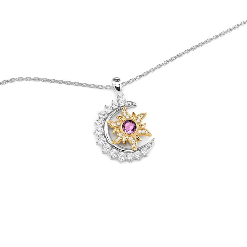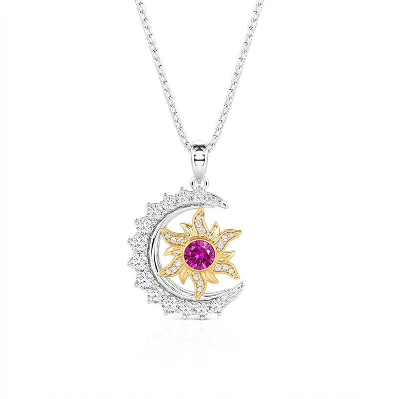 A crescent moon paved with tiny stones curves protectively around a golden sun, its rays dusted with light and centered with a birthstone you choose. Day and night held in balance—This Jeulia Sun Moon Star necklace lets you wear your own star, cradled in celestial warmth, close to where your own heart beats.