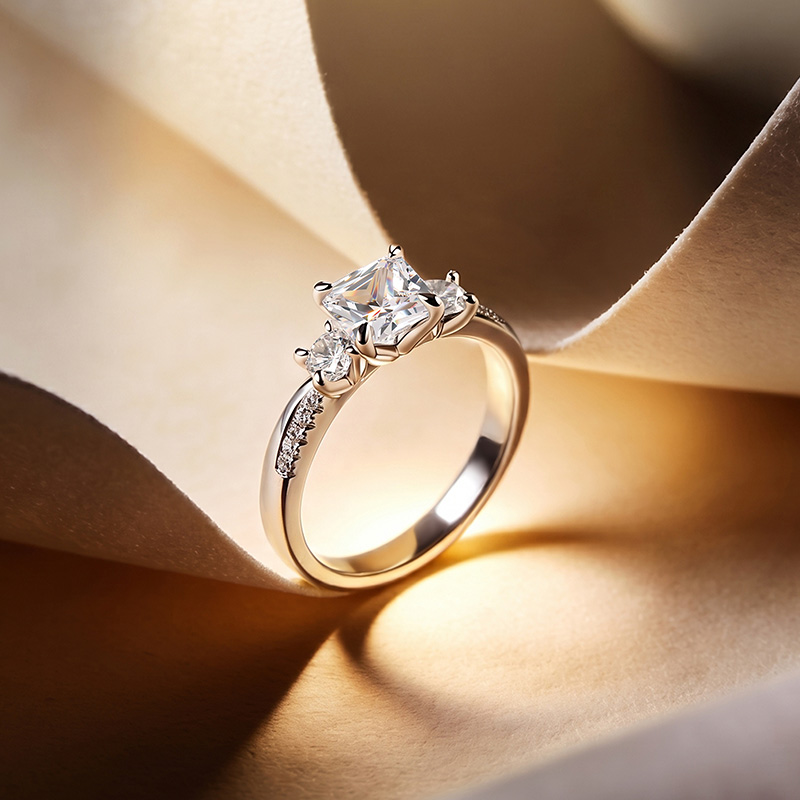 Jeulia Custom Three Stone Princess Cut Engagement Ring