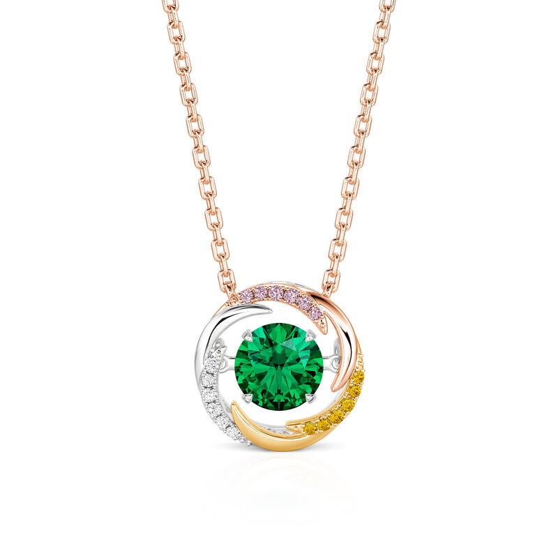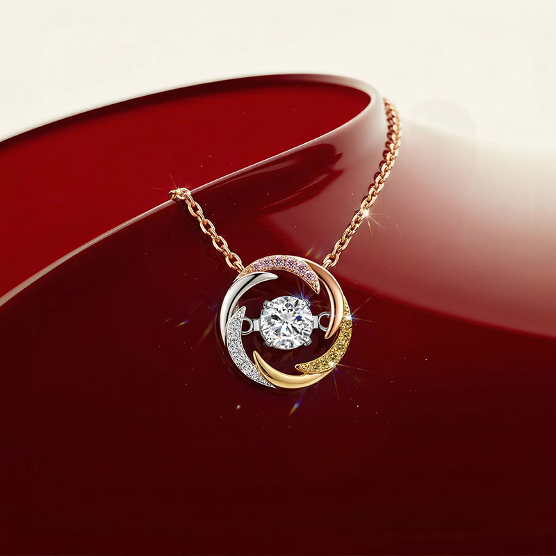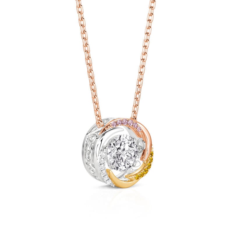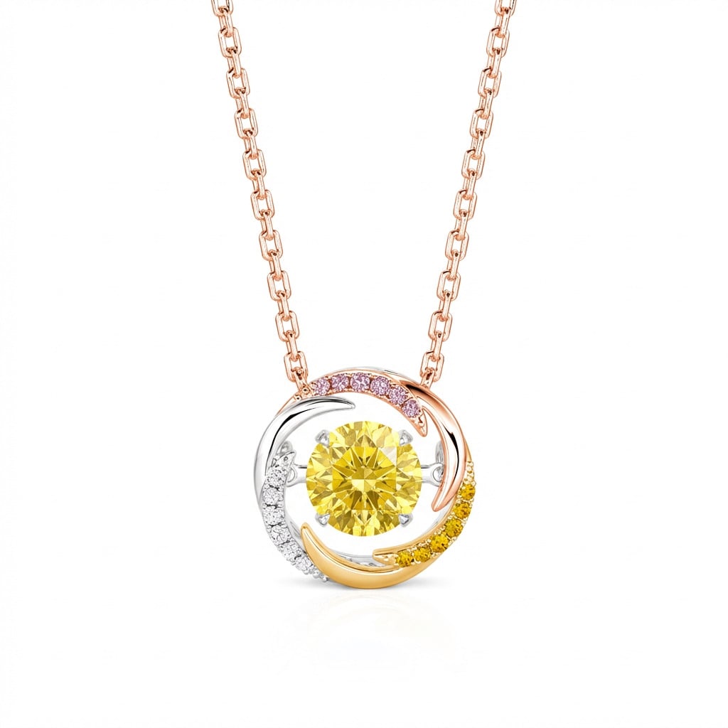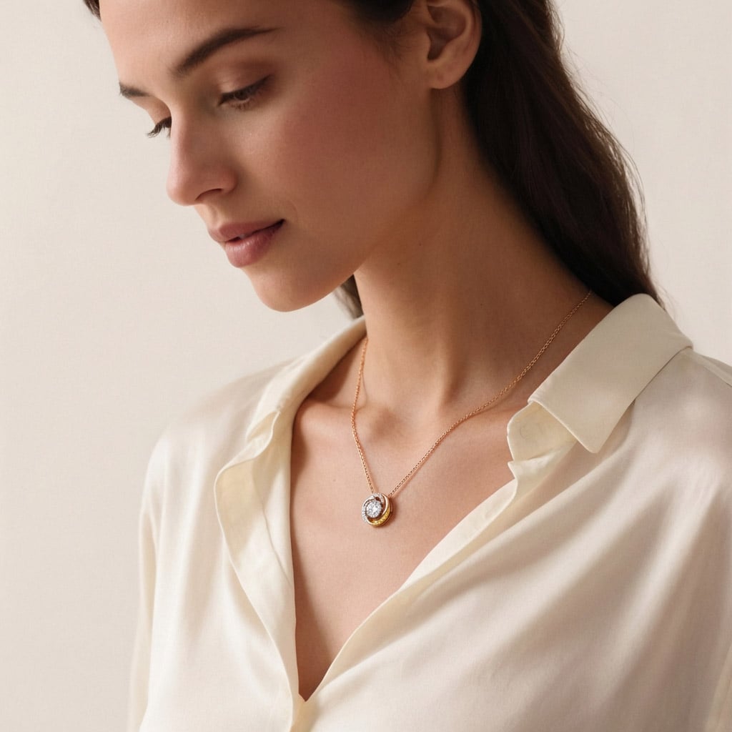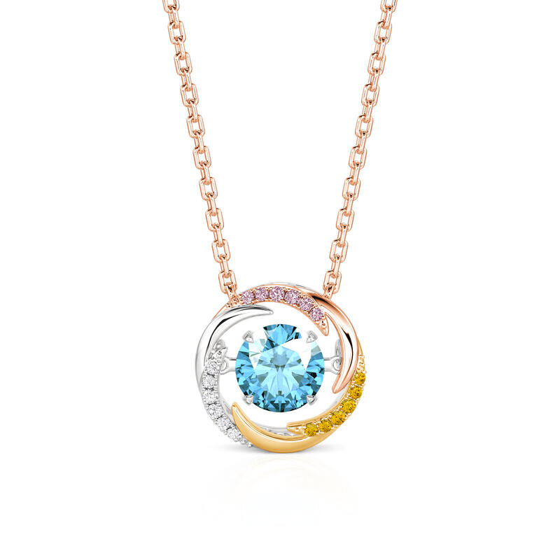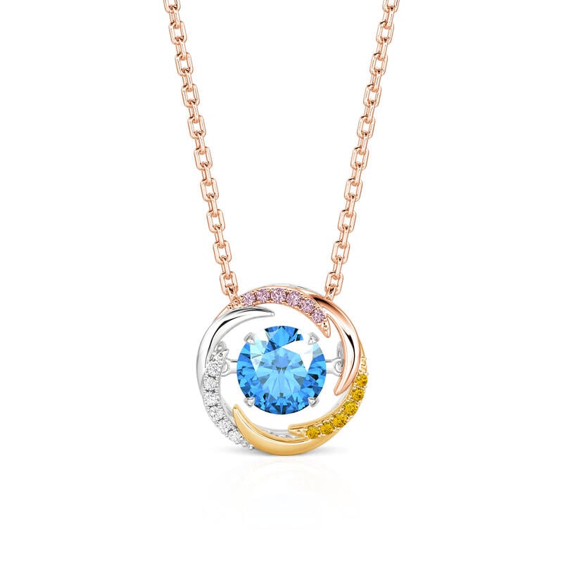 Illuminate your connection with the Jeulia Custom Trinity Necklace. This captivating piece features a tri-color design with intertwining swirls of rose, yellow, and silver tones, symbolizing the beautiful harmony of a shared journey. At its center, a brilliant round-cut stone sits in a dancing setting, capturing the light with every movement. The delicate, pavé-set accents along the outer curves add a refined sparkle, making this minimalist necklace a stunning focal point. Perfectly customizable with a birthstone to represent a loved one or a special milestone, this dancing birthstone necklace offers a sophisticated blend of modern artistry and personal meaning, designed to radiate elegance from every angle.